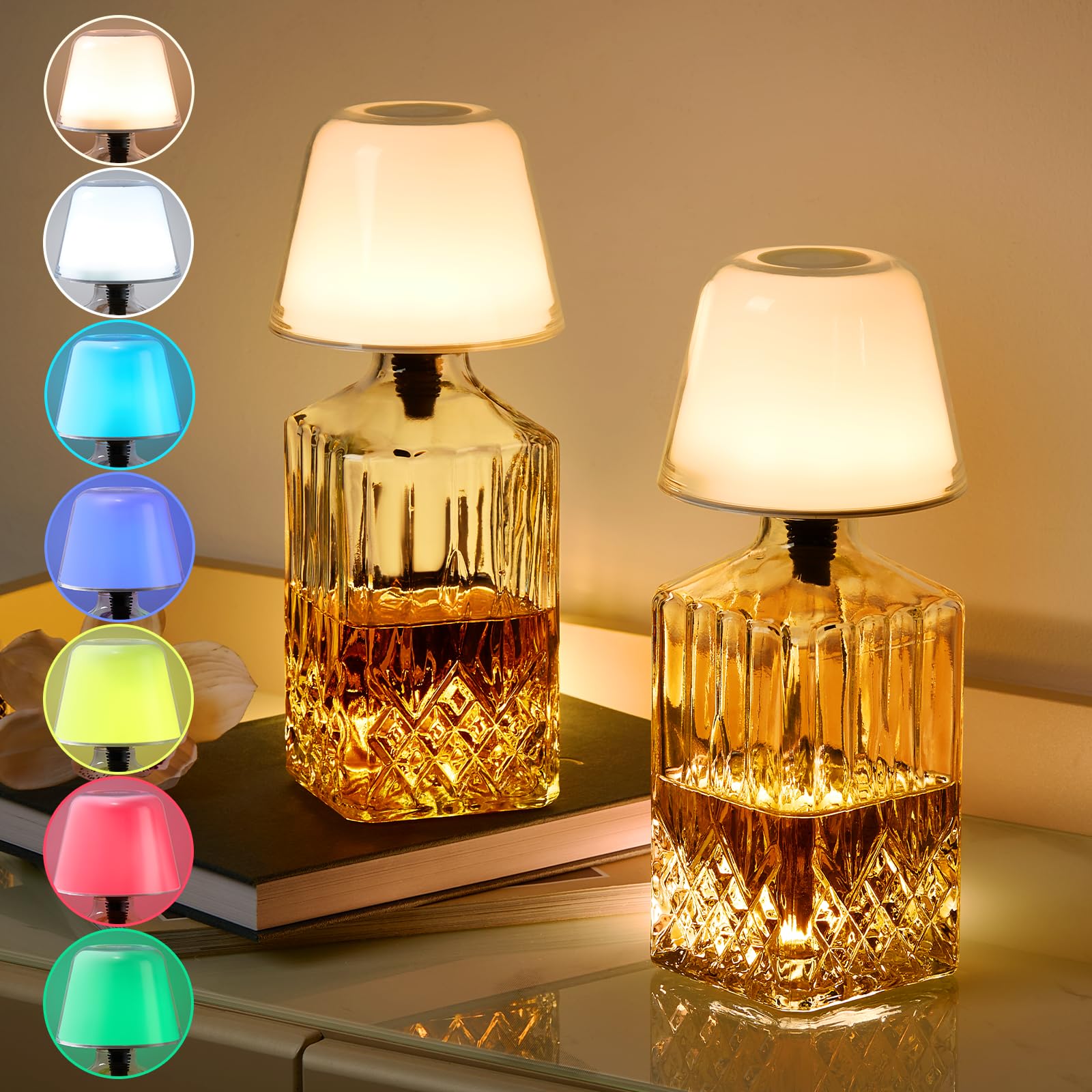 Paquete de 2 pantallas inalámbricas para botellas, lámpara regulable para botella de vino para interiores y exteriores, luces LED