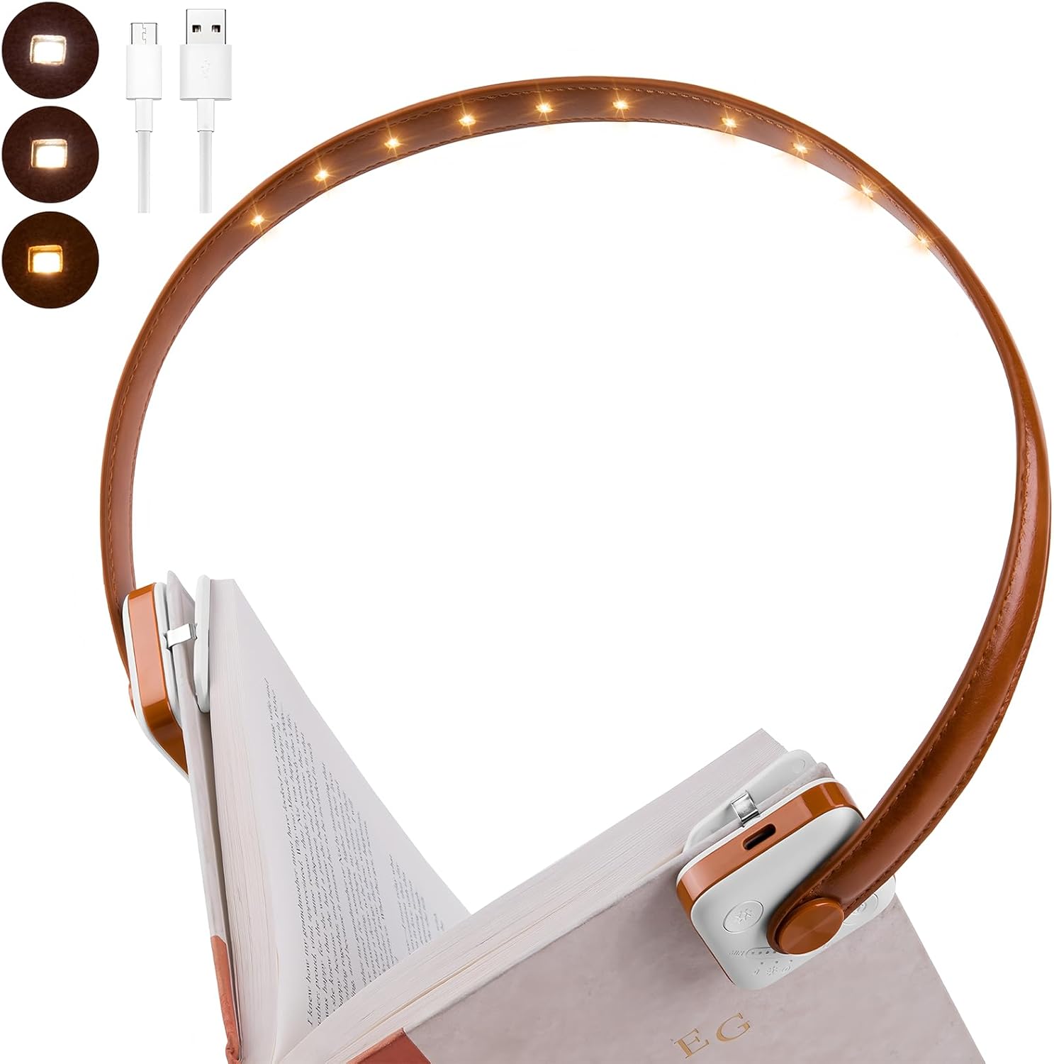 Luz de libro recargable de 12 LED para leer en la cama, cuidado de los ojos, 9 temperaturas de color, brillo de atenuación continu