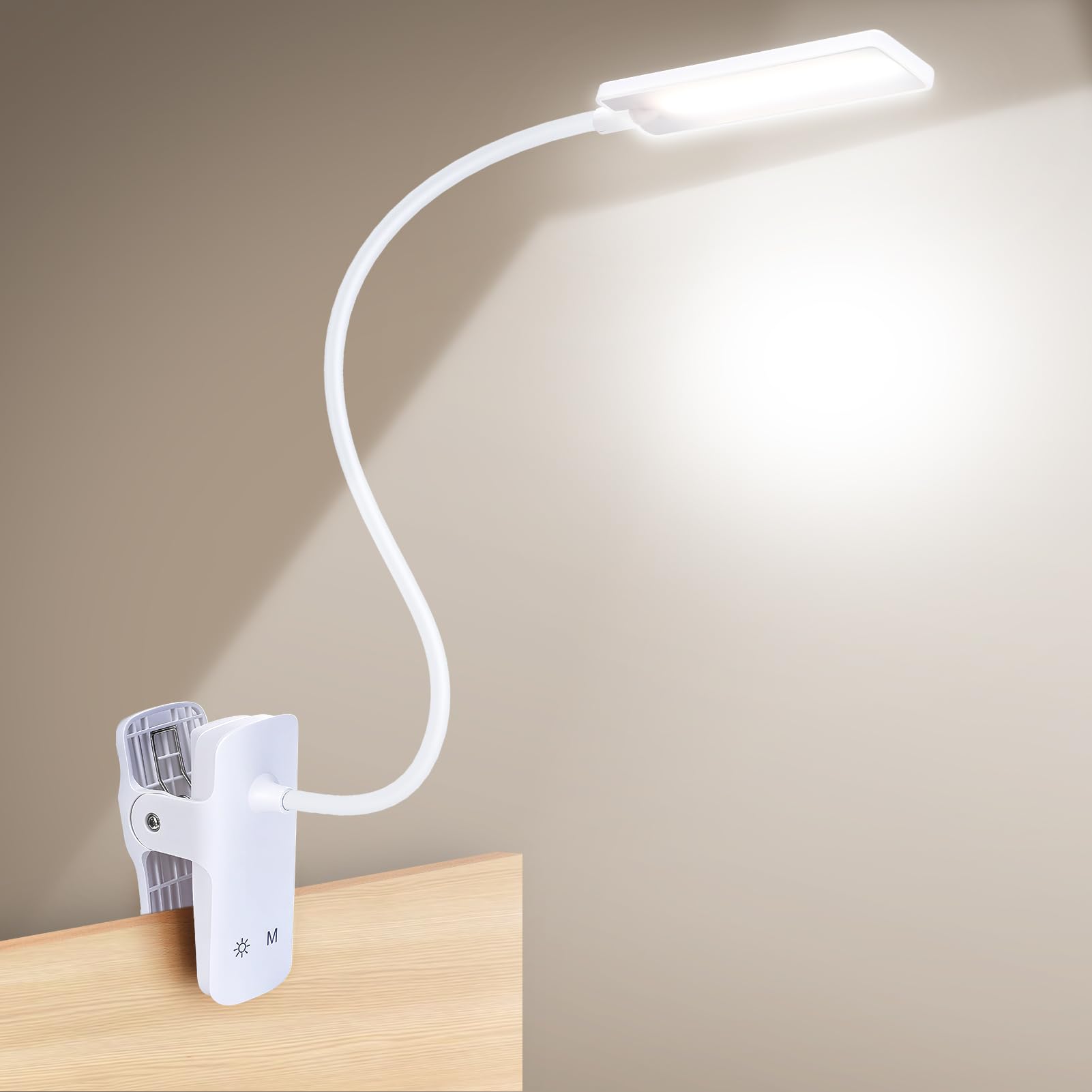Lámpara de escritorio LED para oficina en casa, luz de escritorio con abrazadera, luz de clip para leer, 3 modos, 10 brillo, cuell