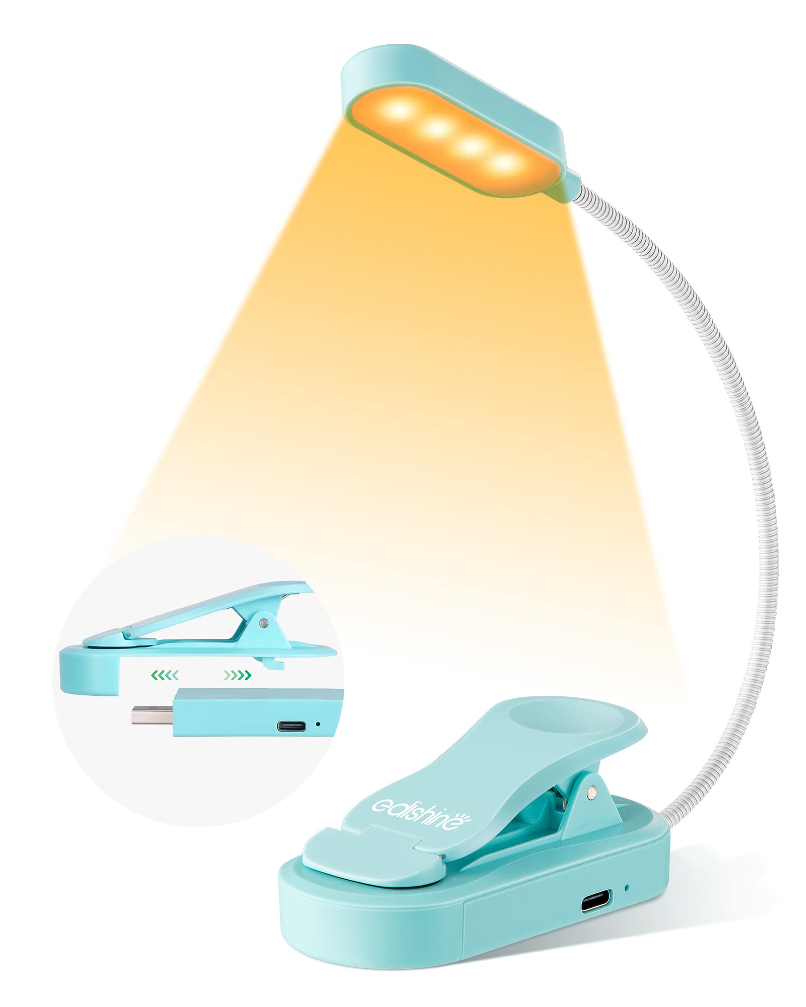 EDISHINE Luz de lectura de libros, lámpara LED con clip, 3 modos de color y regulable continuo, cuidado ocular recargable por USB,