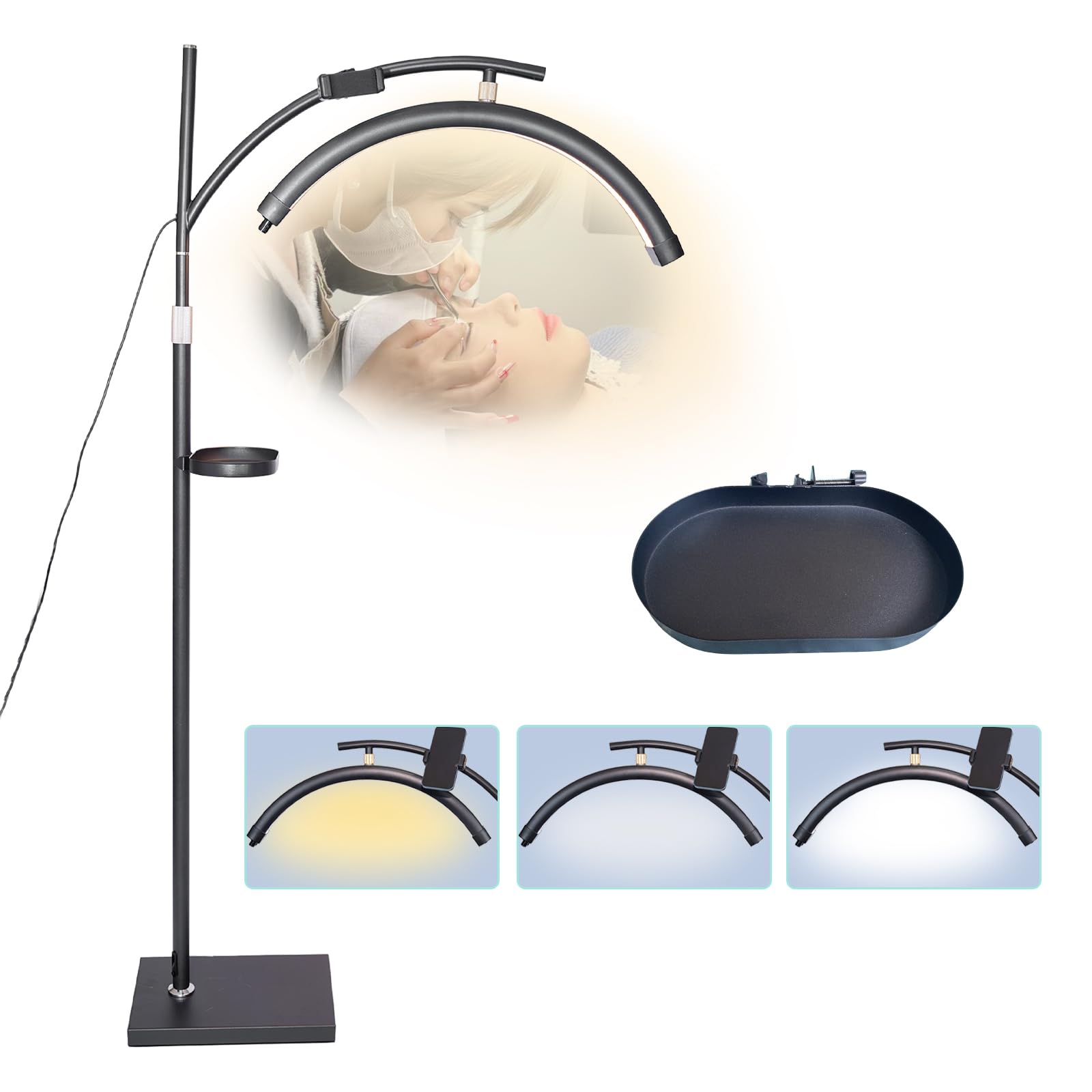 iVict Half Moon Light,2025 New Upgrad Floor Lamp for Eyelash Tech,Tattoo,Nail,Adjustable Height Angle,with Phone Holder,360Rotatin