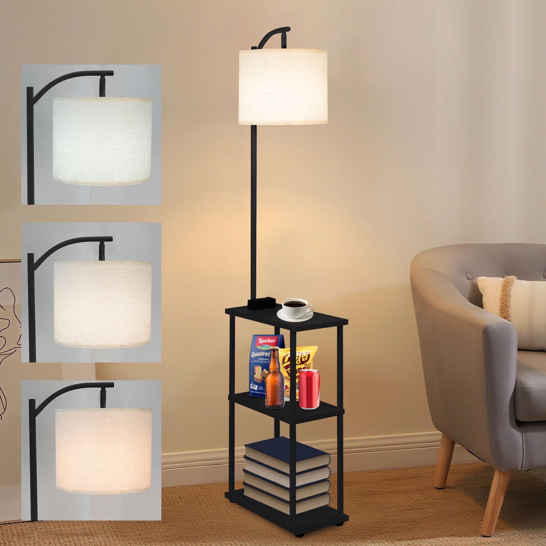 Lámpara de pie alta para sala de estar, luces de soporte de metal modernas para lámparas de esquina de oficina, lámpara de pie LED