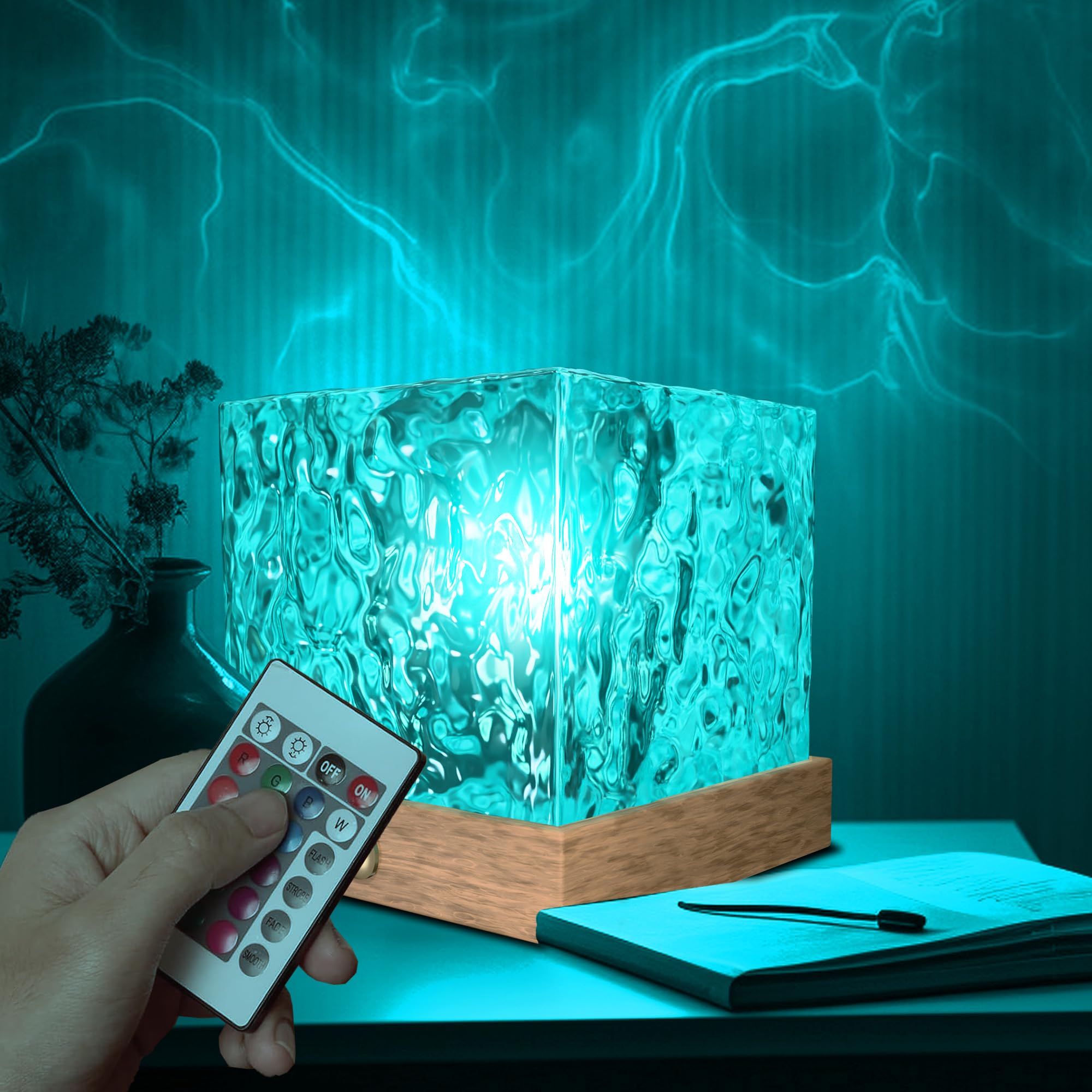 Proyector de ondas oceánicas, lámpara de agua de cubo de 16 colores, iluminación ambiental romántica holográfica 3D para habitació