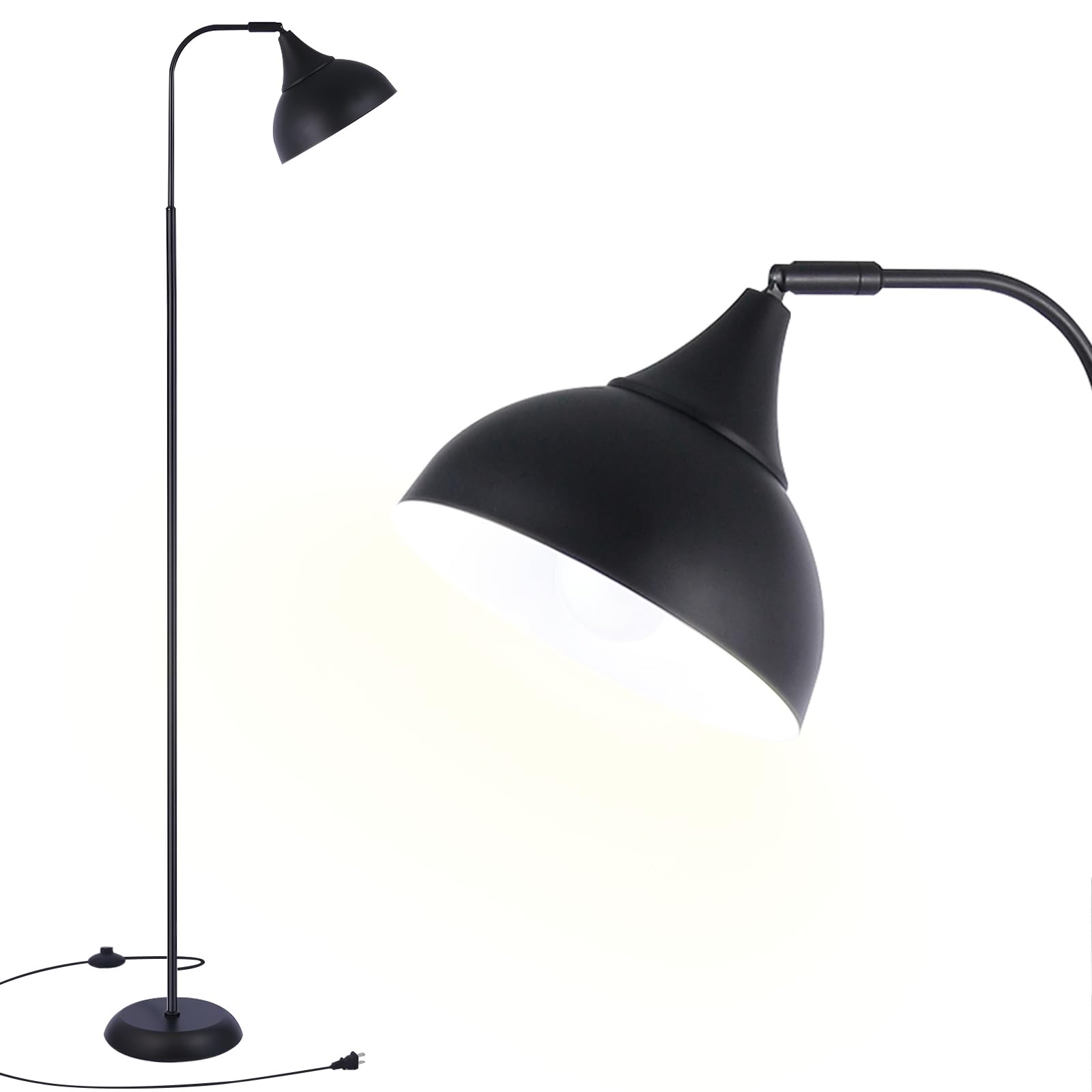 Lámpara de pie LED industrial, lámpara de pie ajustable de metal negro para sala de estar, dormitorio, oficina, lámpara de lectura