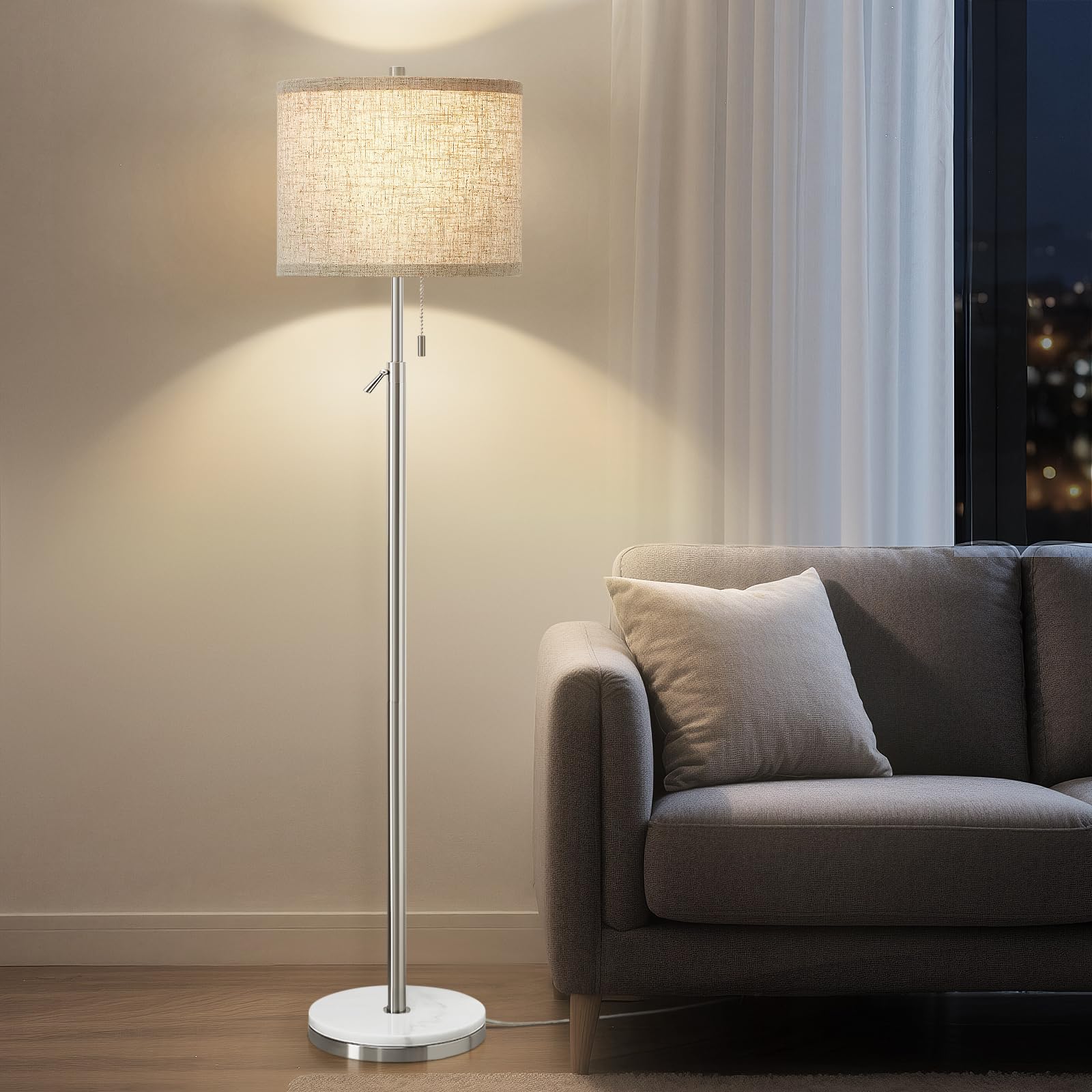 GyroVu Lámpara de pie de mármol, lámpara de pie de altura ajustable con base de mármol, lámpara alta con interruptor de cadena de