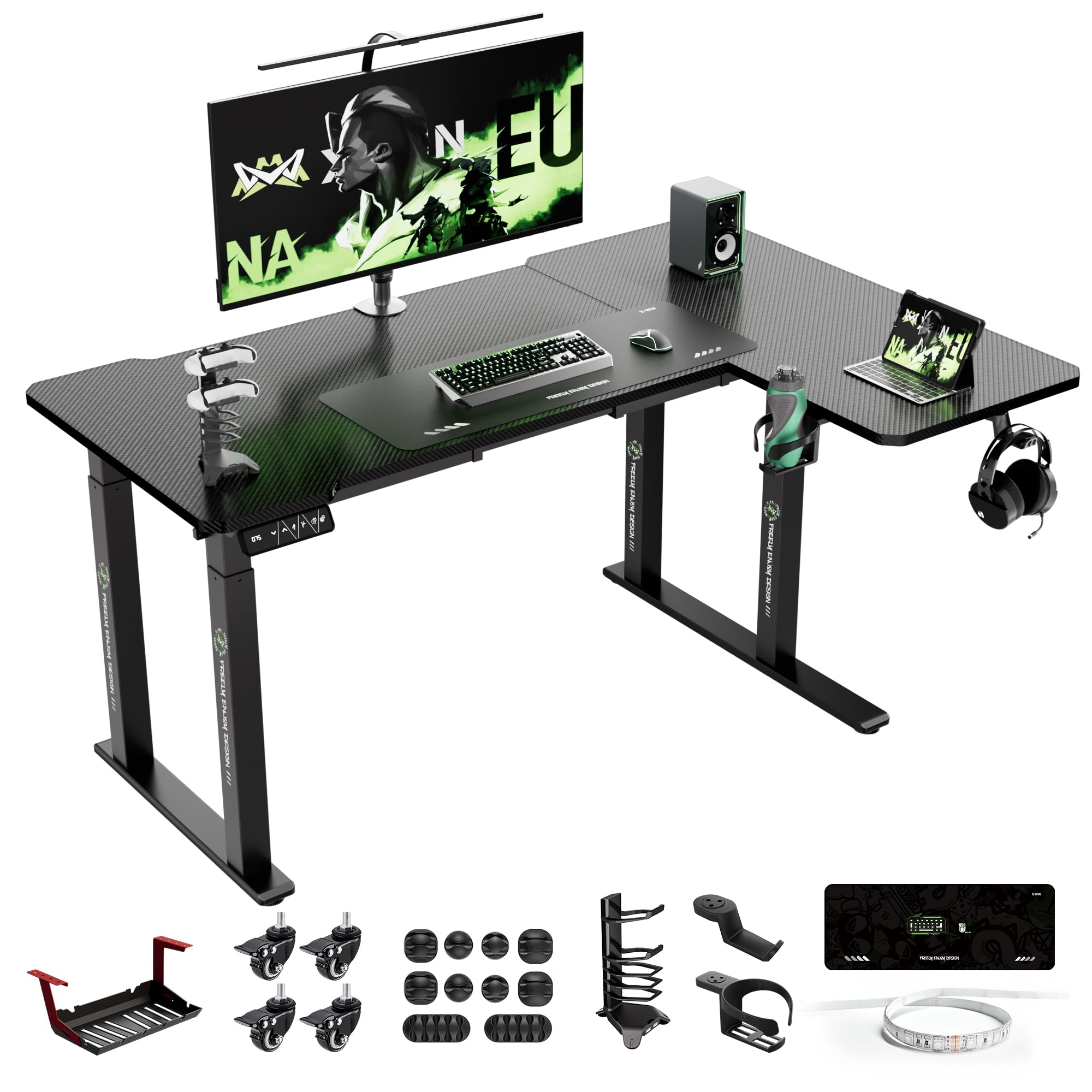 X-Win – Escritorio eléctrico reversible en forma de L de 63 pulgadas, escritorio ajustable en altura de doble motor con ruedas de