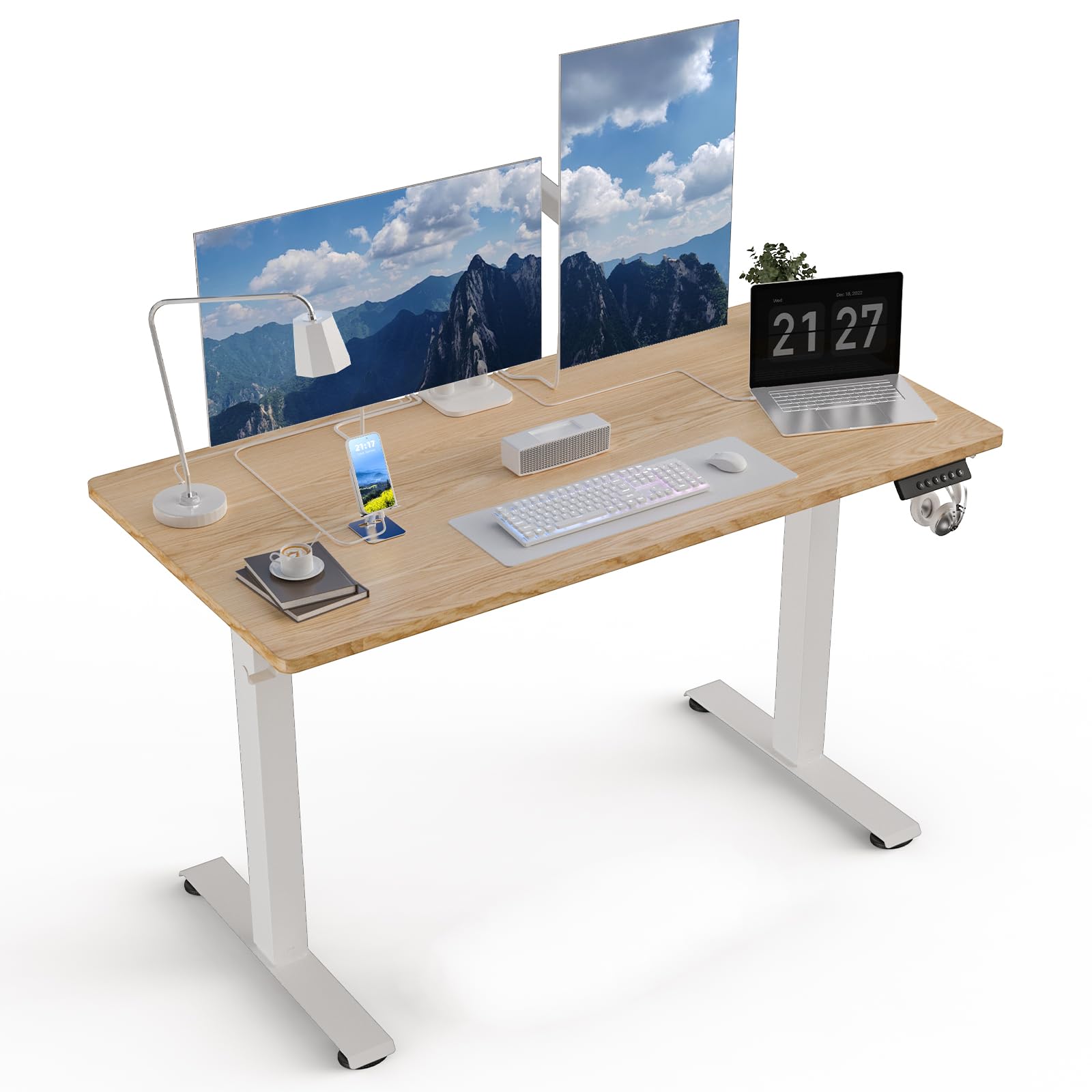 Escritorio eléctrico de pie ajustable en altura para computadora, 48 pulgadas, estaciones de trabajo con gancho, mesa ergonómica p