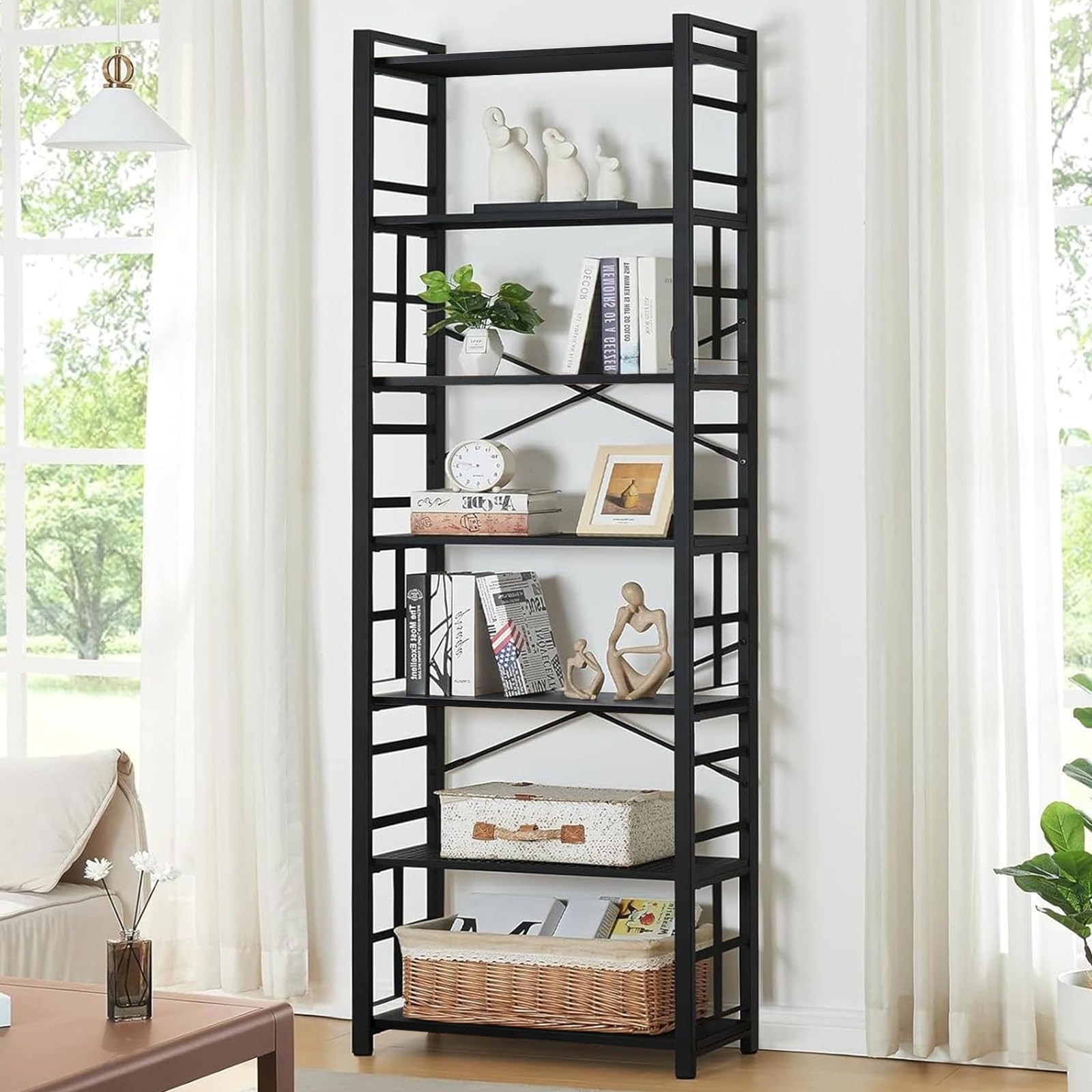 Yusong Estantería arqueada de 4 niveles, estantes abiertos industriales de 71.3 pulgadas de alto para sala de estar, estante de al