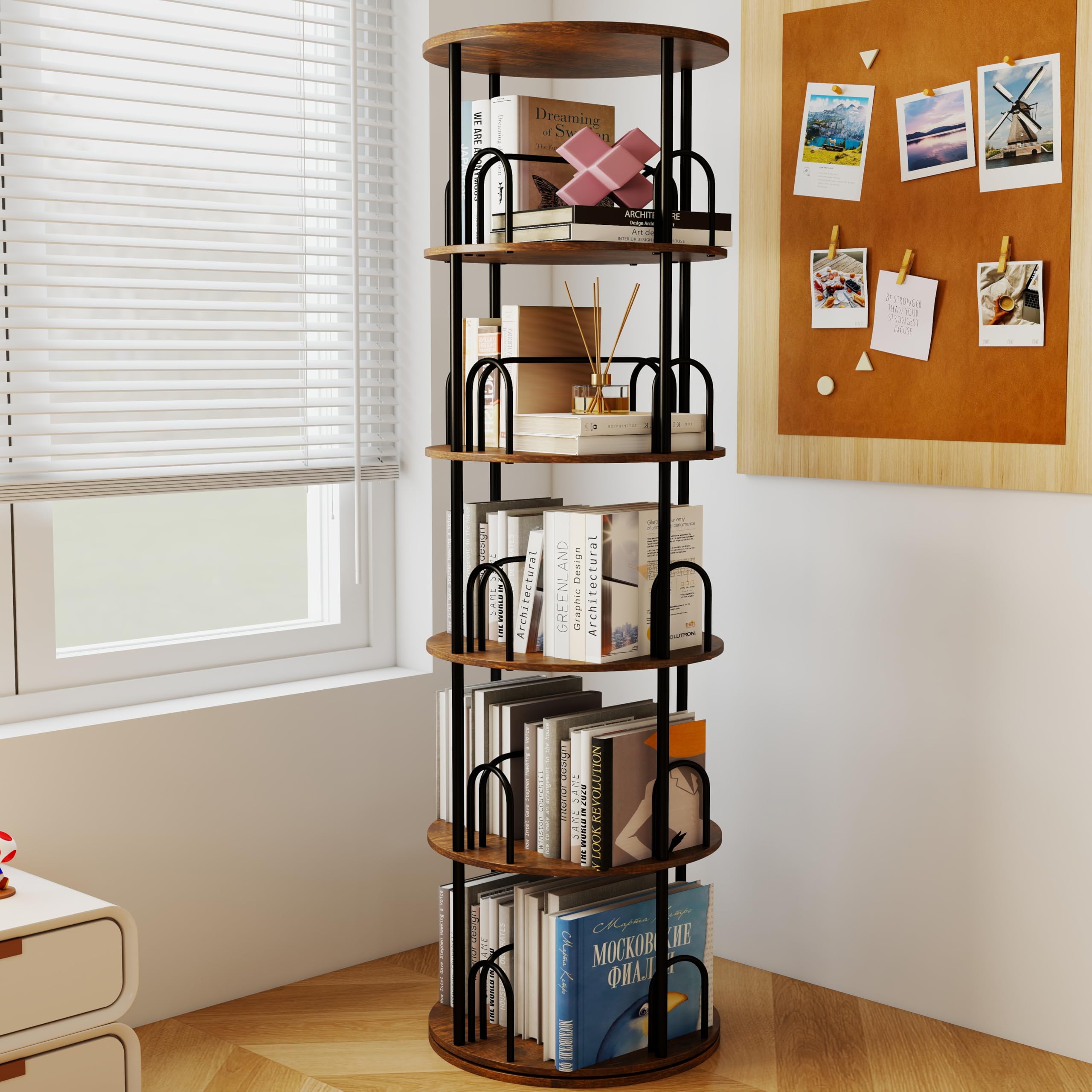 Estantería giratoria de 5 niveles, torre giratoria redonda de 360°, estantería alta de madera delgada y metal para esquina, oficin