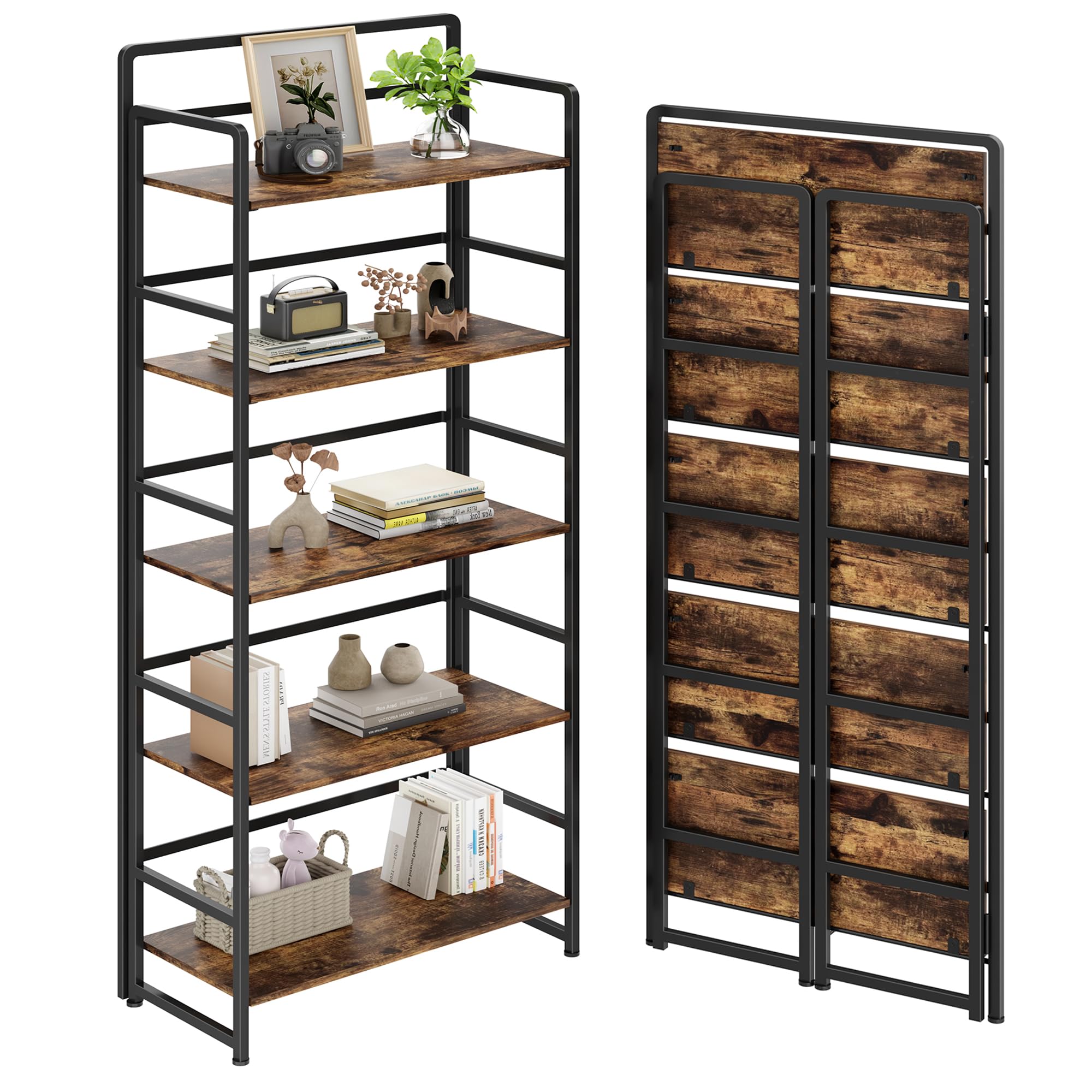 Estantería plegable sin montaje, estante plegable de 5 niveles para oficina en casa, organizador de almacenamiento plegable de mad