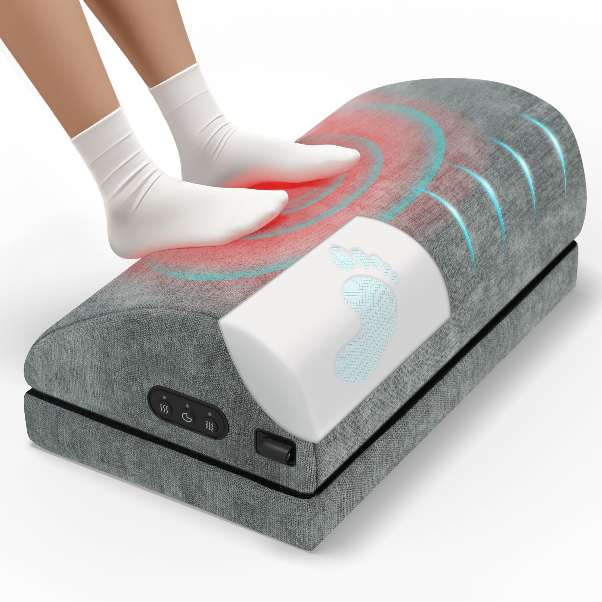 Reposapiés térmico para debajo del escritorio en el trabajo, taburete de pies con masaje de vibración, 2 niveles de calor, altura