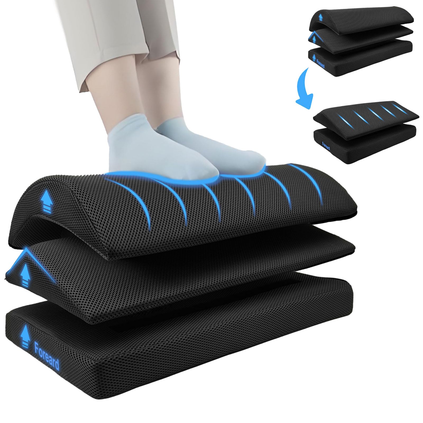 KAYFIA Reposapiés para debajo del escritorio en el trabajo, XXL (20 pulgadas) con 3 alturas ajustables, taburete con espuma de gel