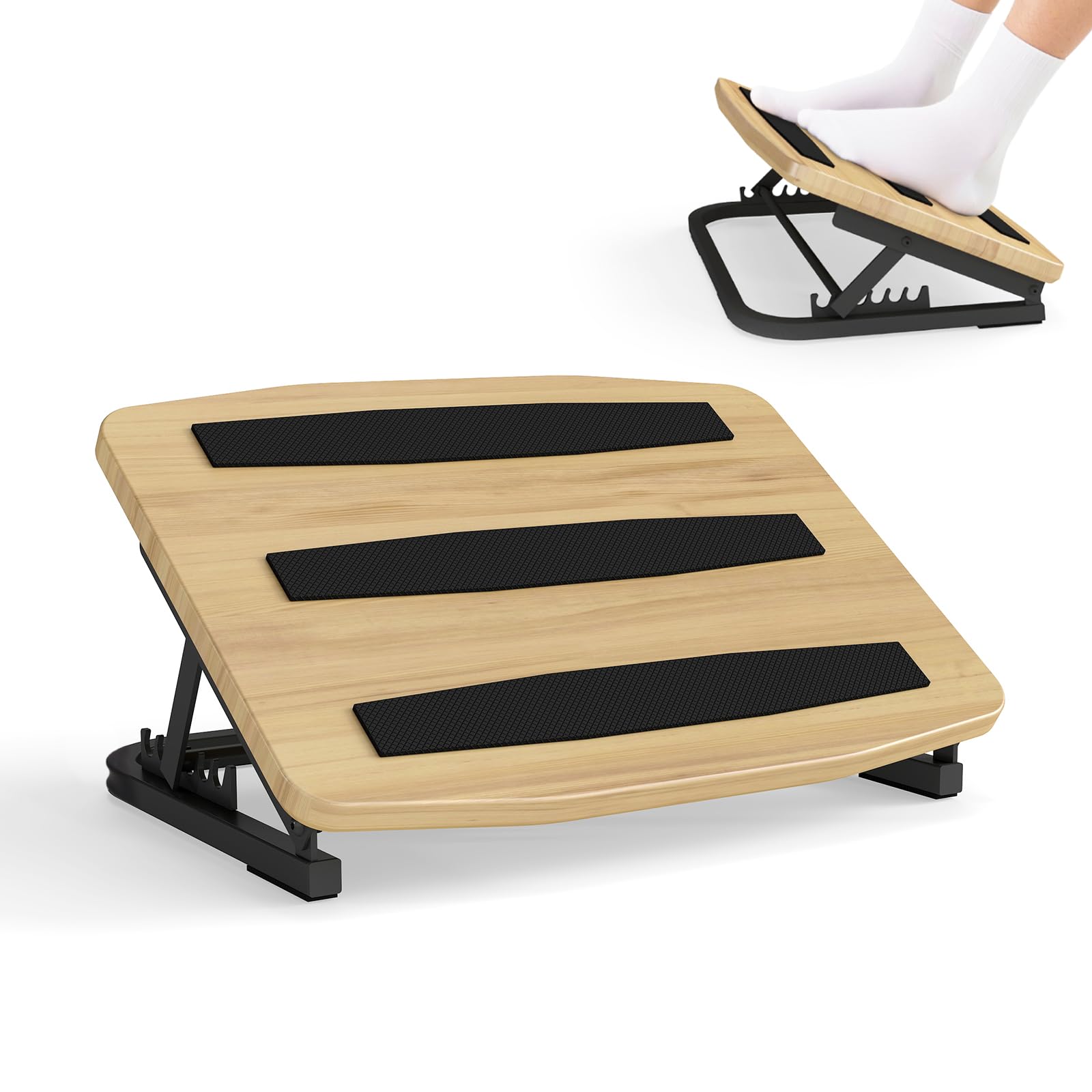Amazer Reposapiés de bambú para debajo del escritorio en el trabajo, reposapiés reversible 2 en 1, reposapiés ajustable, reposapié