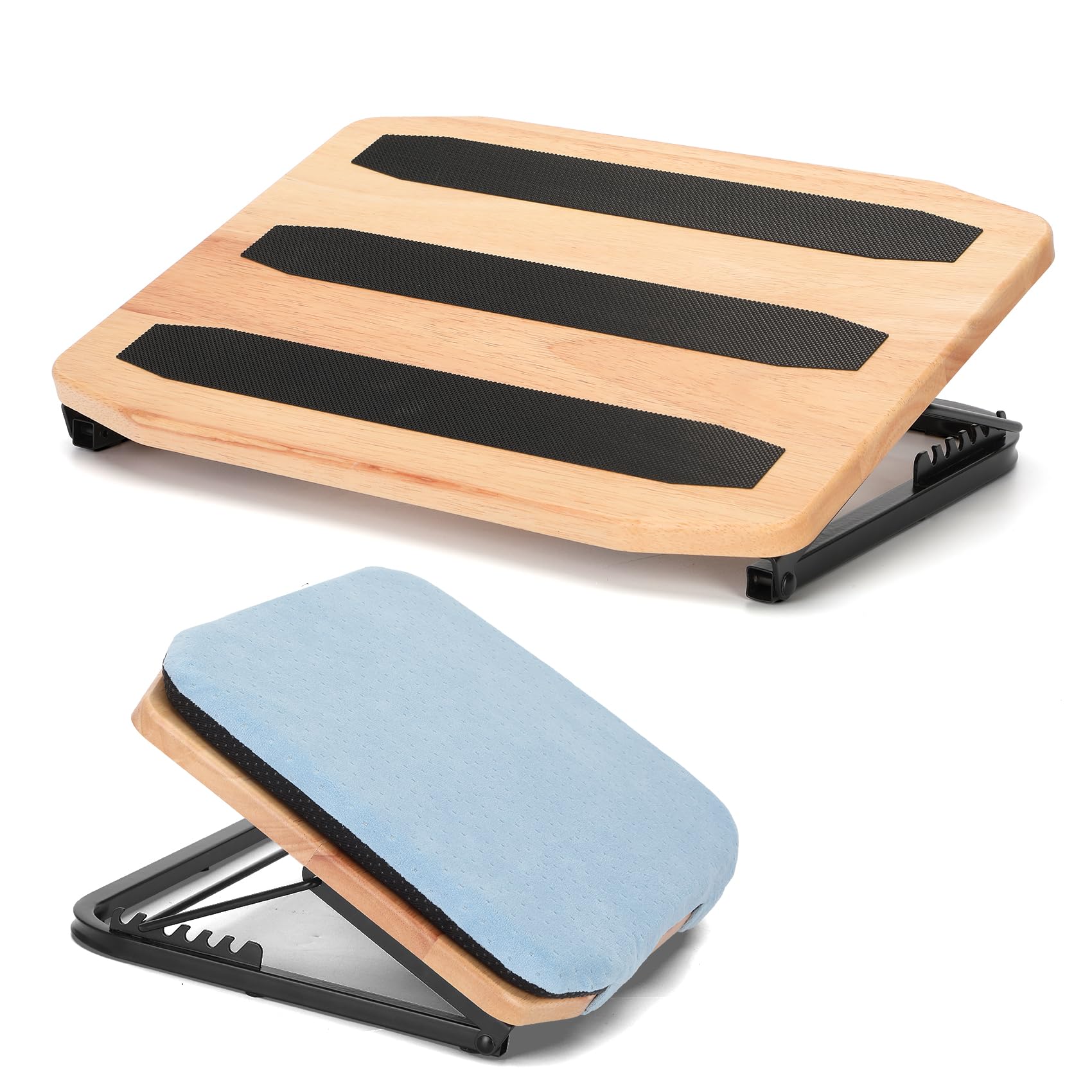 StrongTek Reposapiés ergonómico de madera, taburete ajustable de 4 ángulos para escritorio, reposapiés de oficina, soporte antides
