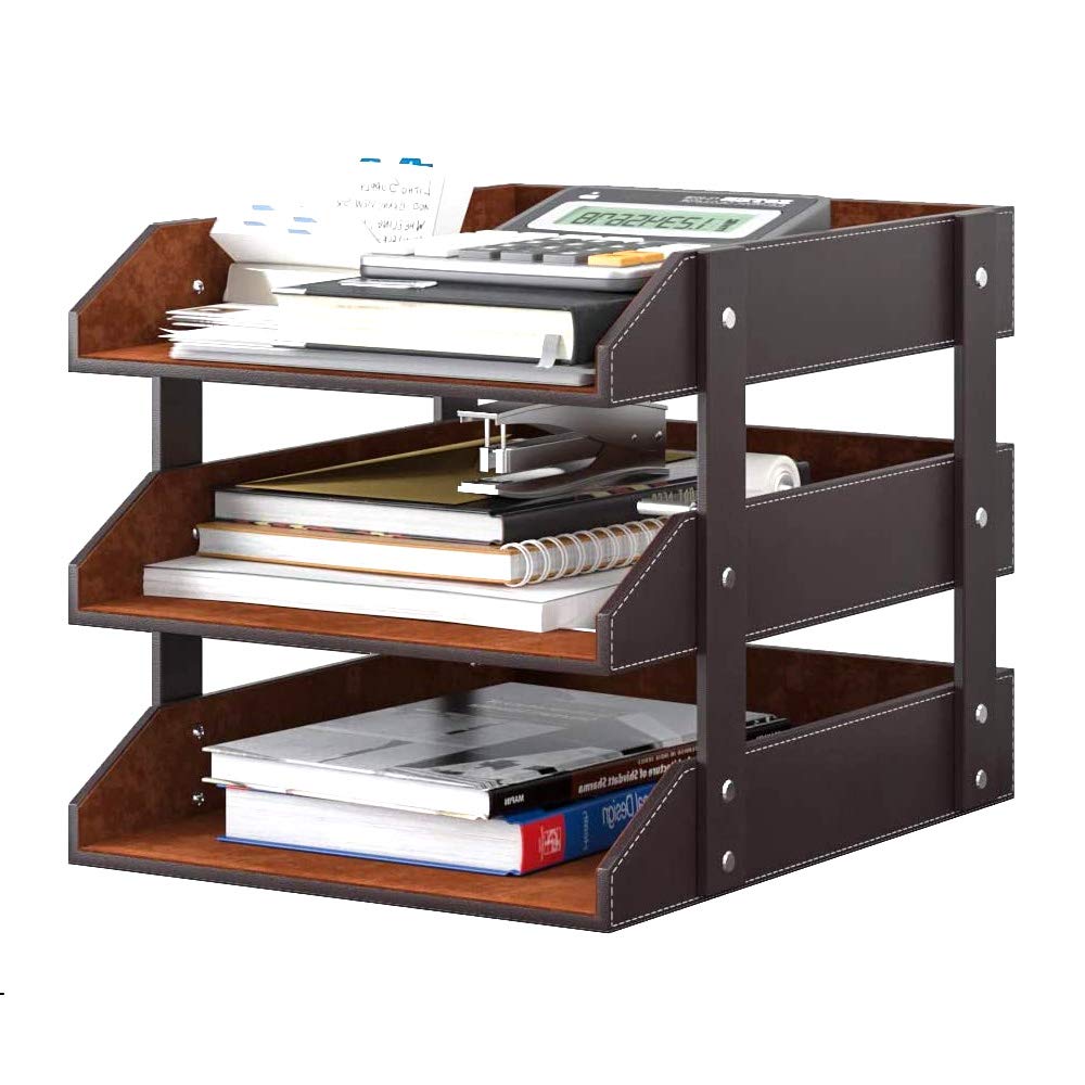Organizador de escritorio de cuero, bandeja apilable de 3 niveles para documentos 95store, soporte perfecto para organizar archivo