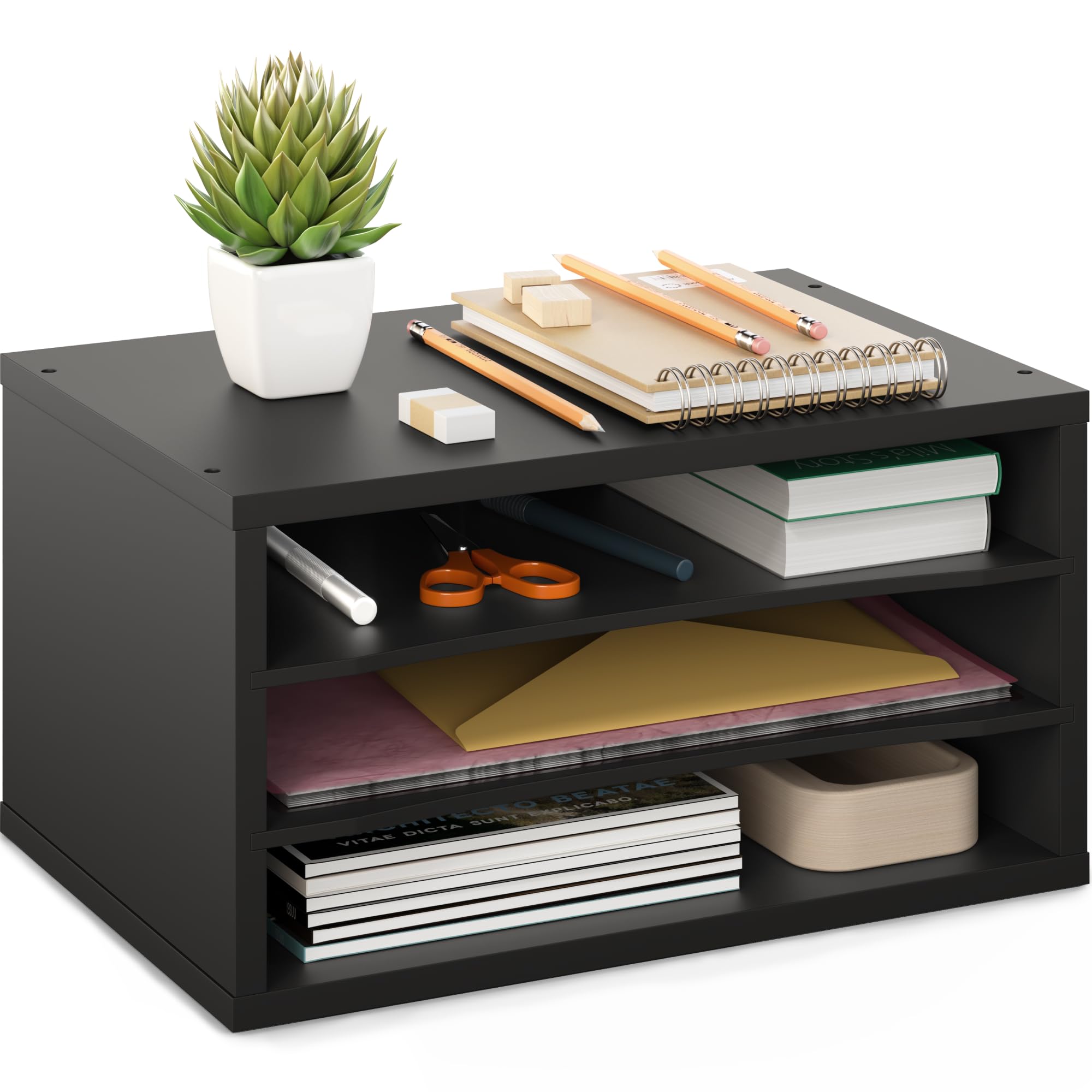 Acrimet Bandeja apilable de 4 niveles de carga lateral de plástico organizador de archivos de escritorio (color negro)