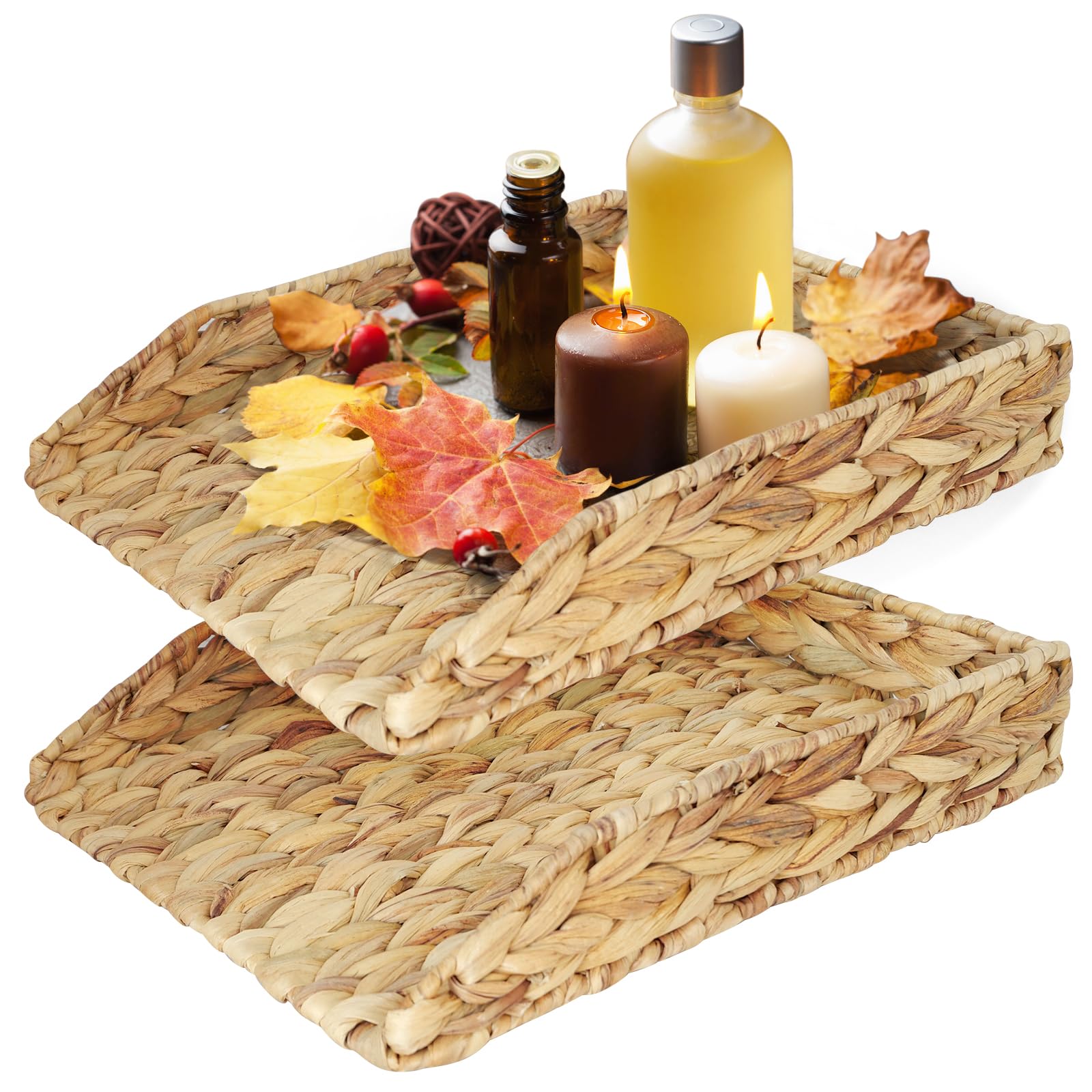 Bandeja rectangular de jacinto de agua tejida a mano, 2 unidades, bandeja de documentos de papel rectangular para escritorio, cart