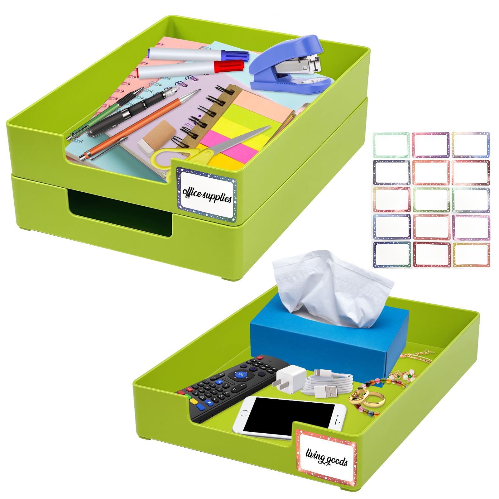 Set of 2 Office Organization and Storage Clear Acrylic Letter Paper Tray Desk Organizer Stackable Document and File Paper Holder O