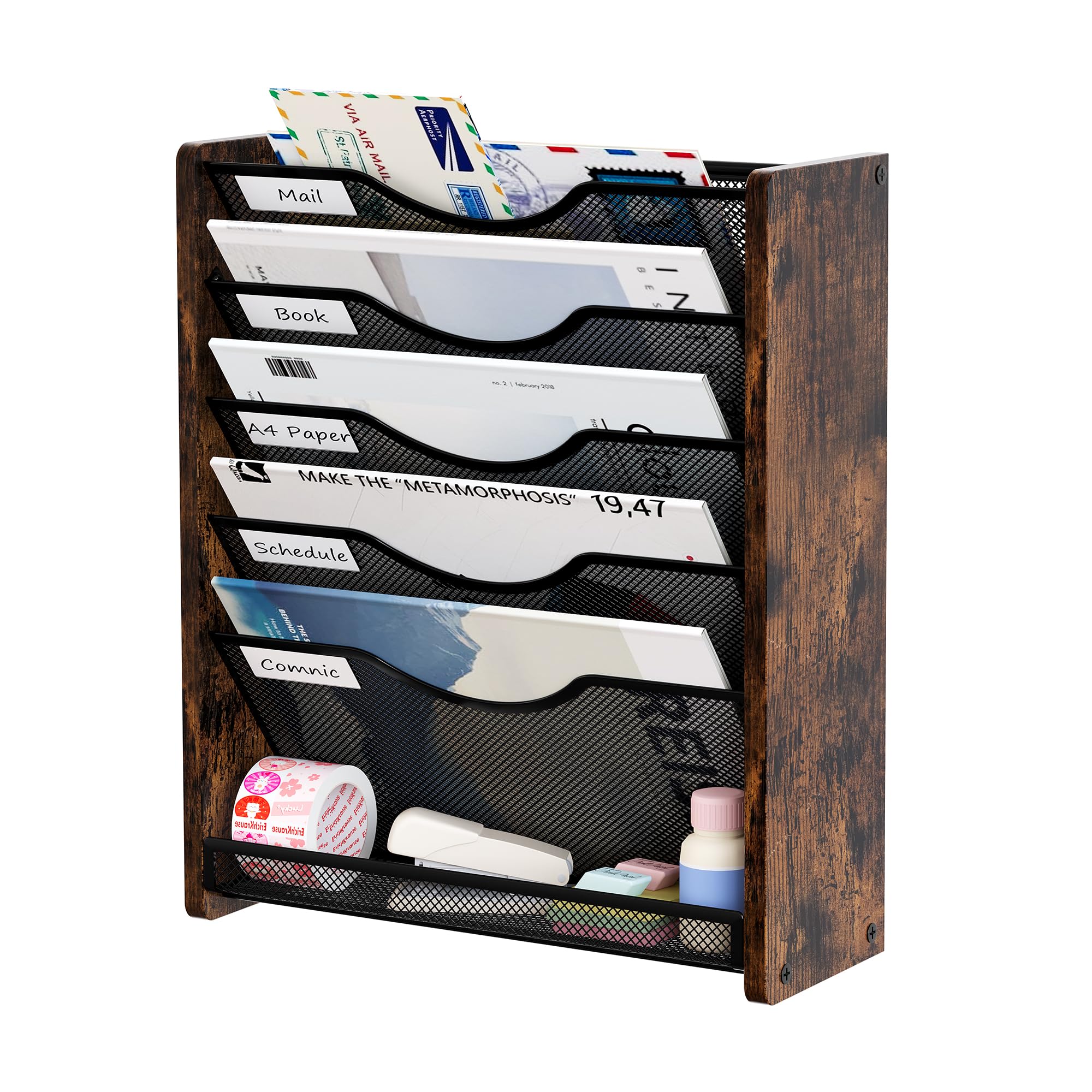 Organizador de archivos de escritorio, bandeja de correo de escritorio de 6 niveles, organizador de documentos con soporte para bo