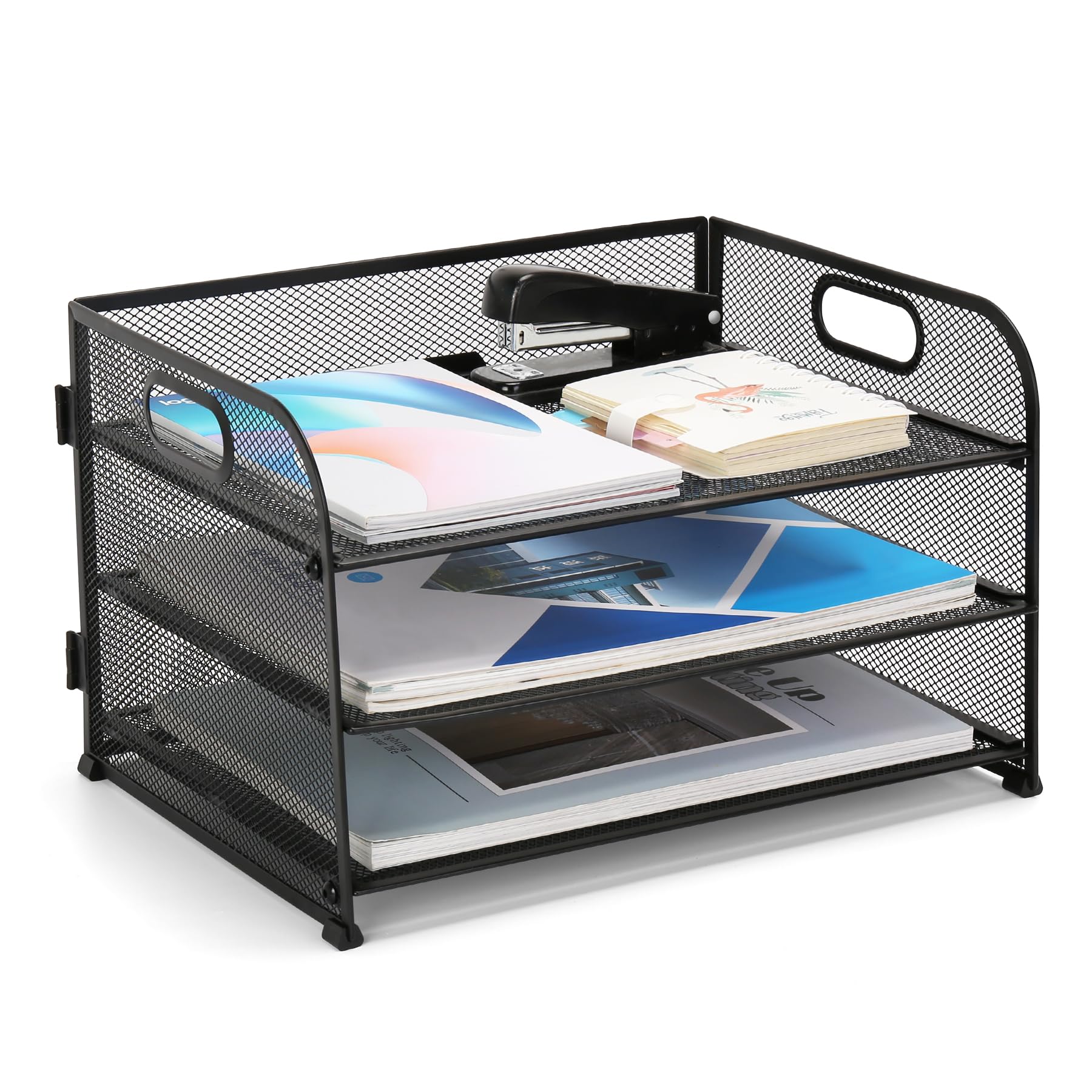 EasyPAG Organizador de archivos de malla para escritorio, organizador de bandeja de papel de 3 niveles con montaje sin tornillos y