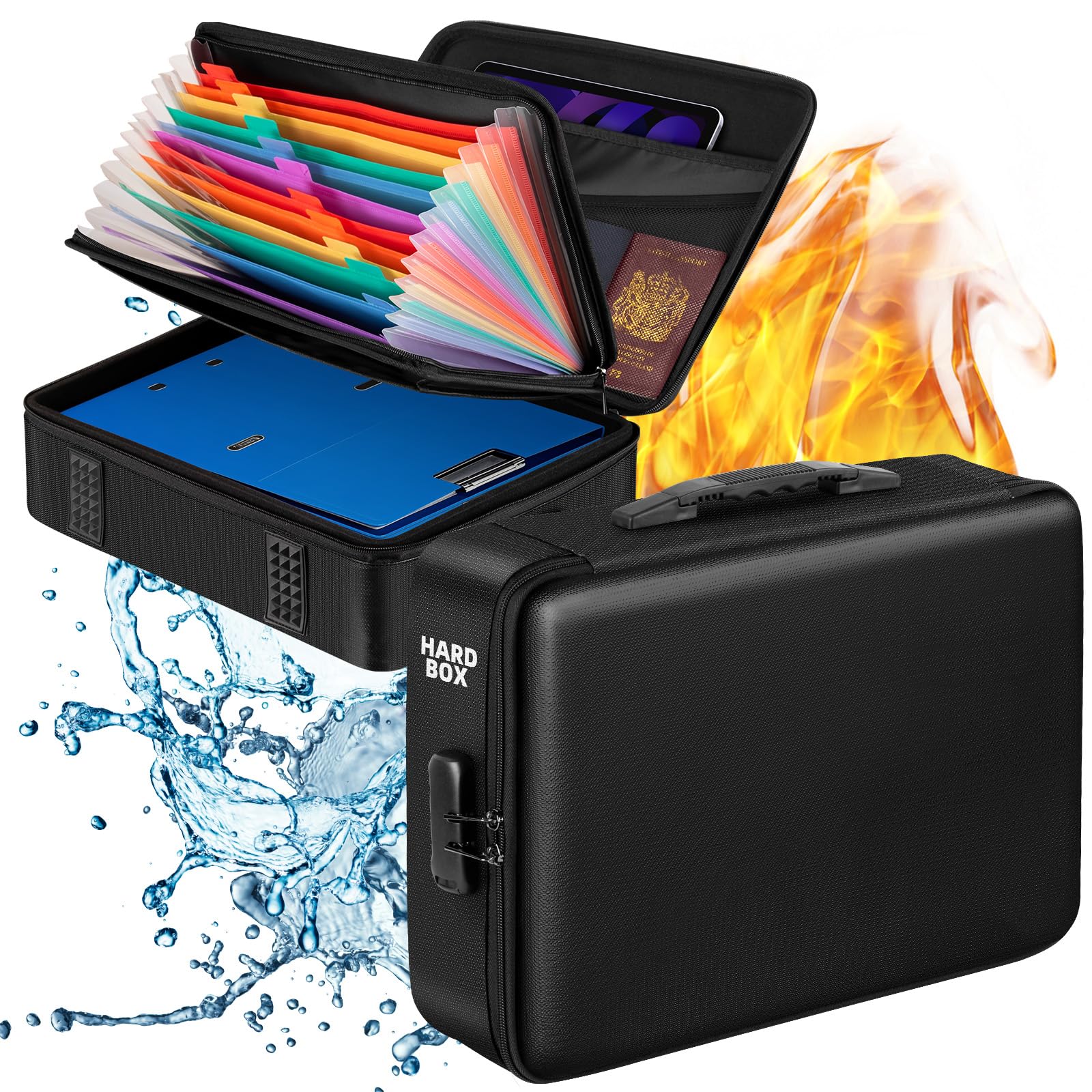 Caja de documentos ignífuga con cerradura, organizador de archivos rígido duradero, caja fuerte contra incendios, diseño de carcas