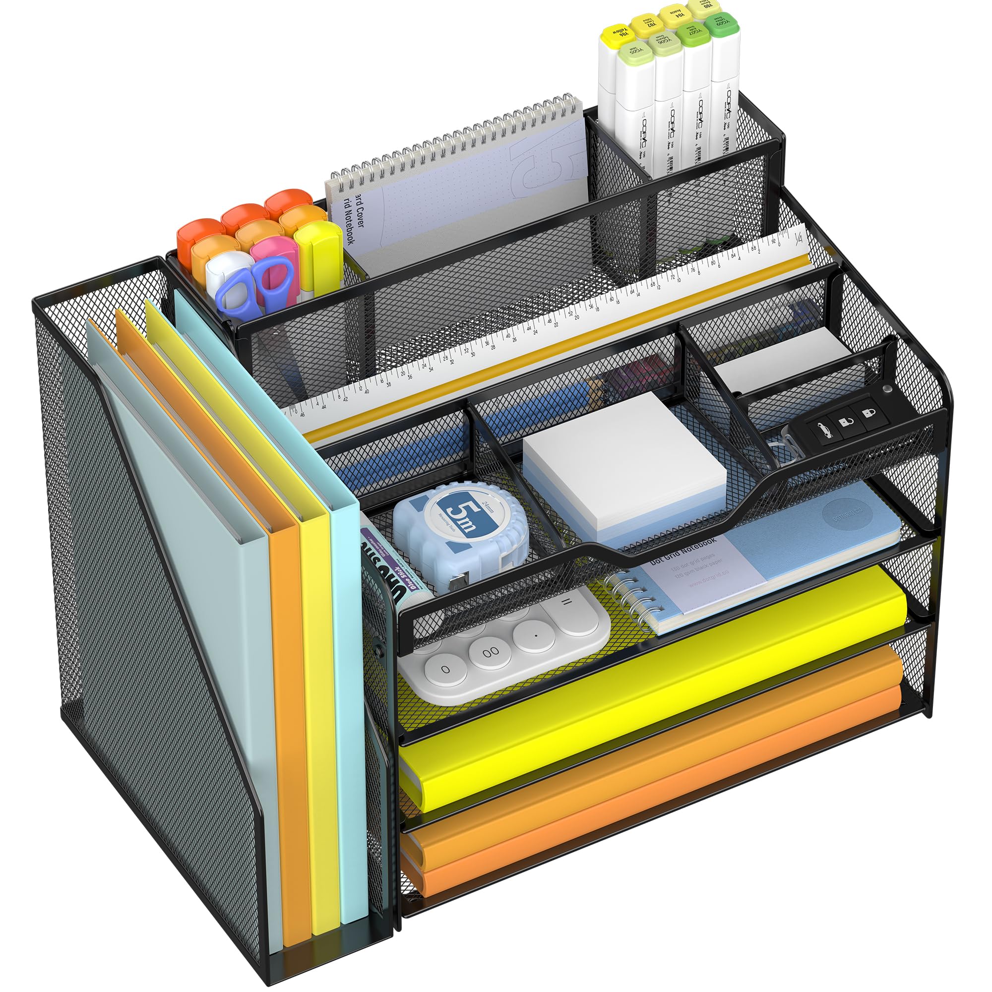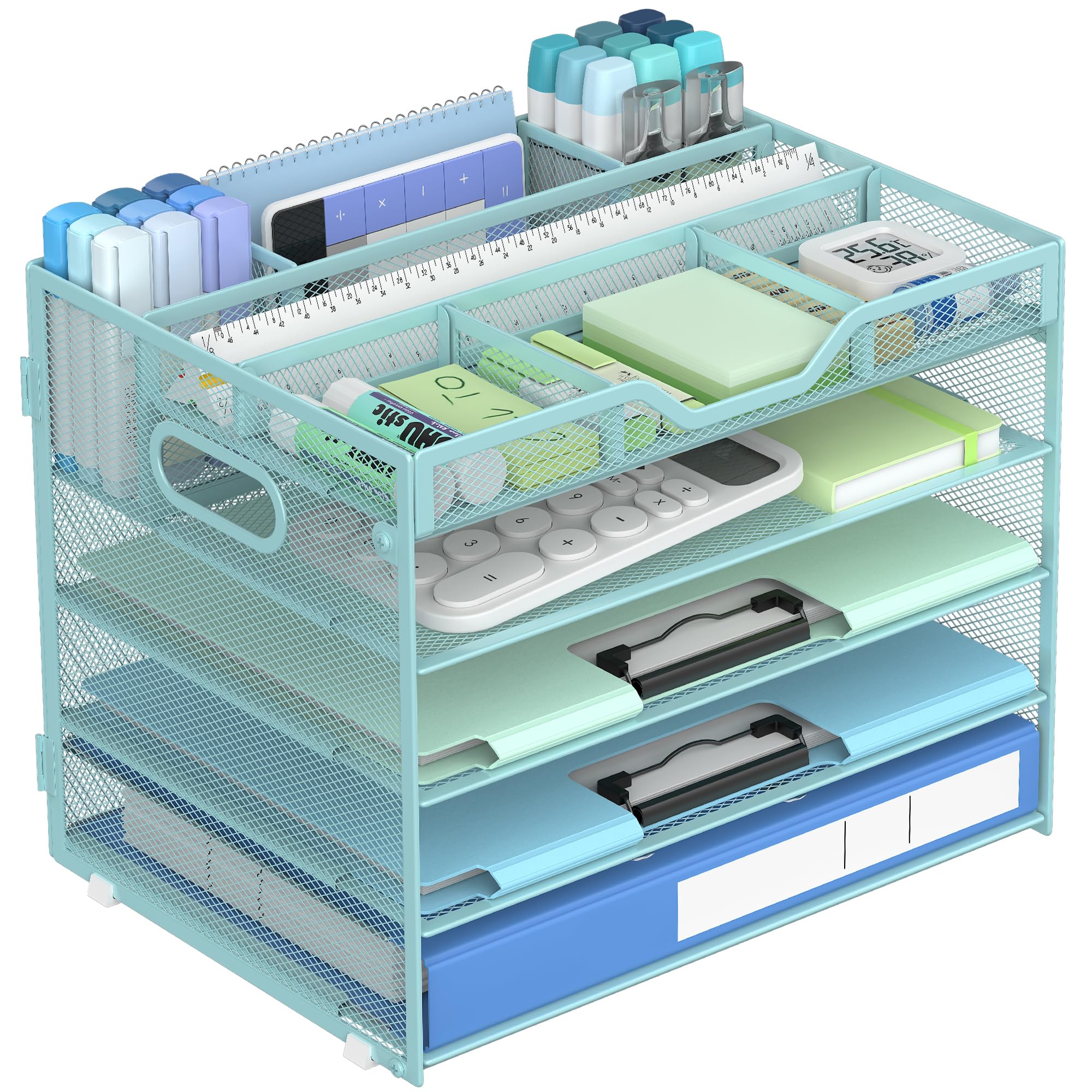SUPEASY Organizador de escritorio de 5 niveles con asa y soportes extraíbles para bolígrafos, organizador de papel de malla/archiv