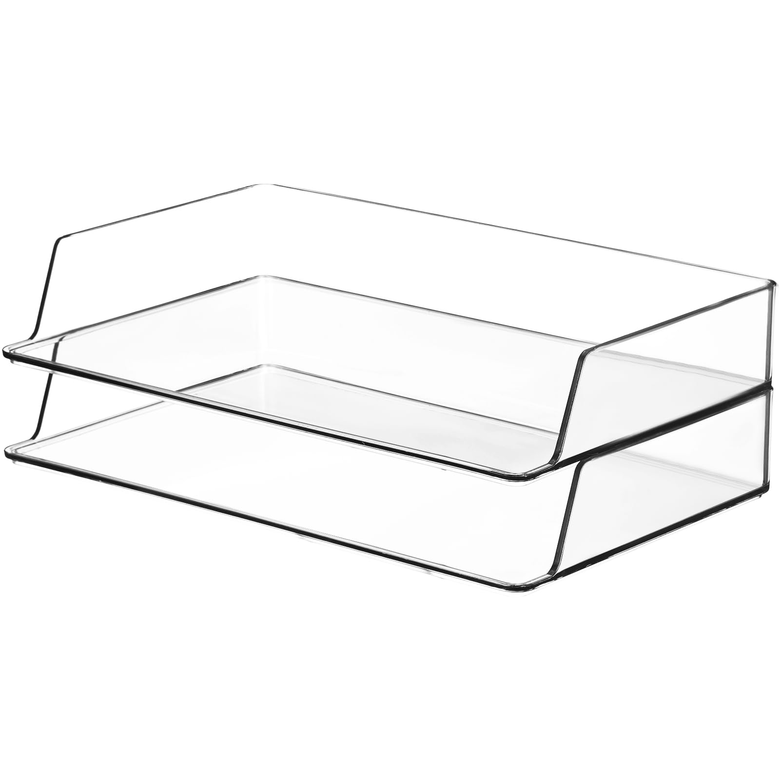 Elsjoy Juego de 2 bandejas acrílicas para cartas, bandeja de papel apilable de 2 niveles, organizador de archivos de escritorio tr