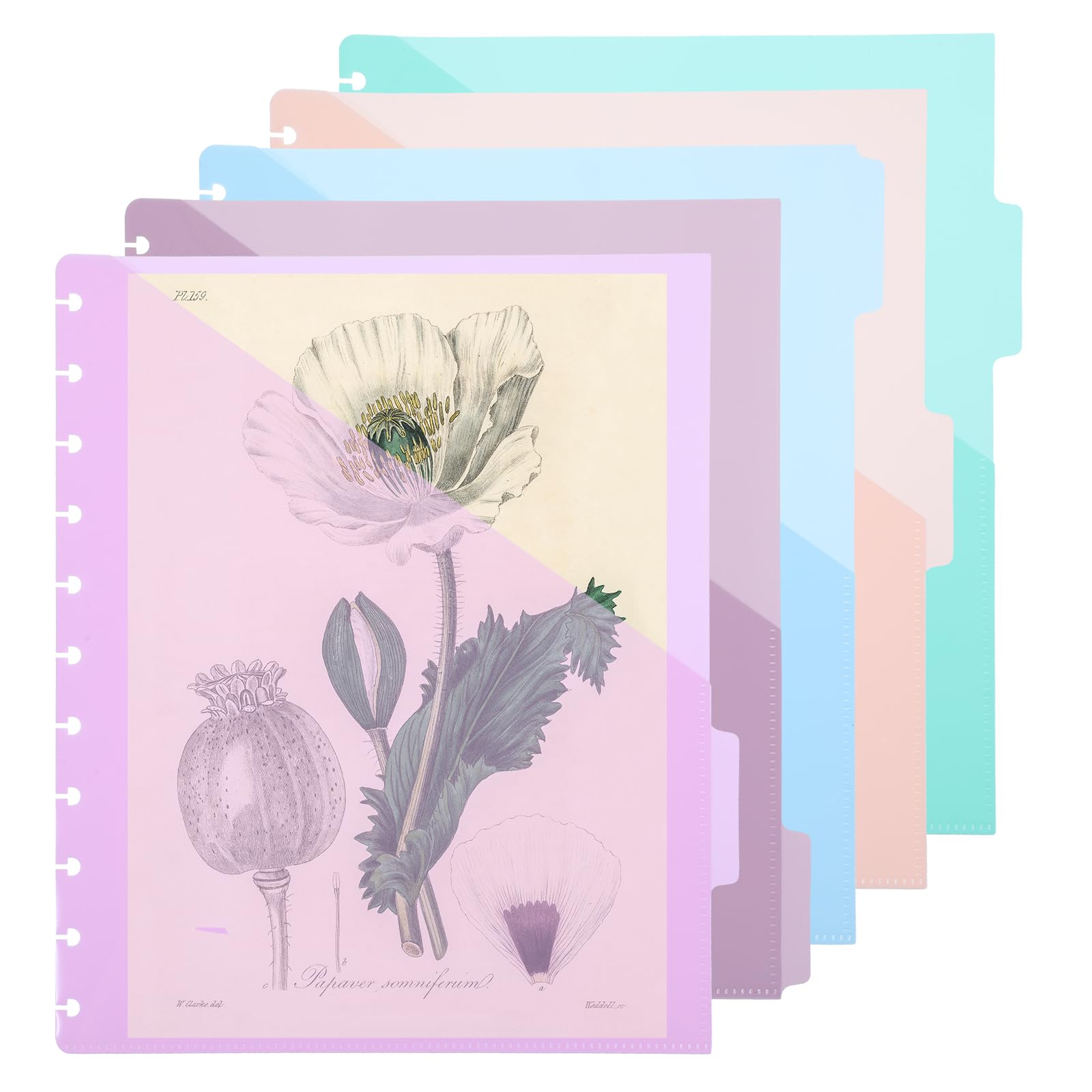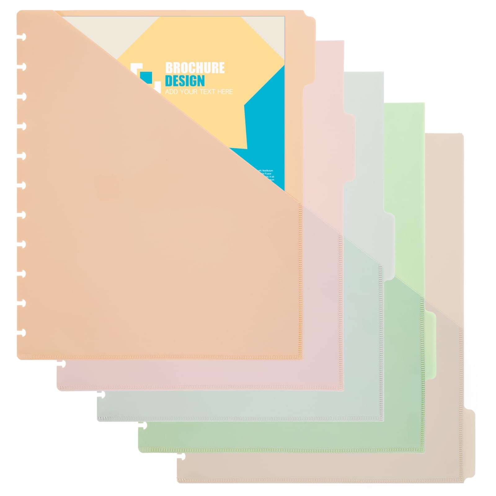5 separadores de carpetas con pestañas y bolsillos, 11.14 x 9.25 pulgadas, accesorios para cuadernos, fundas para carpetas e inser