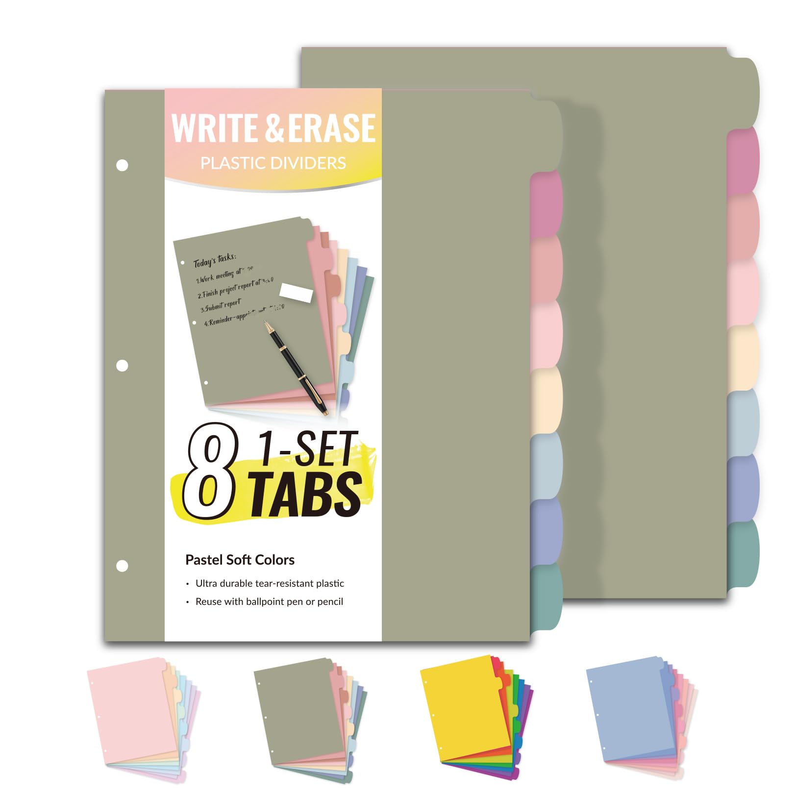 Sooez Separadores de plástico de larga duración para escribir y borrar de 8 pestañas grandes para carpeta de 3 anillas, separadore