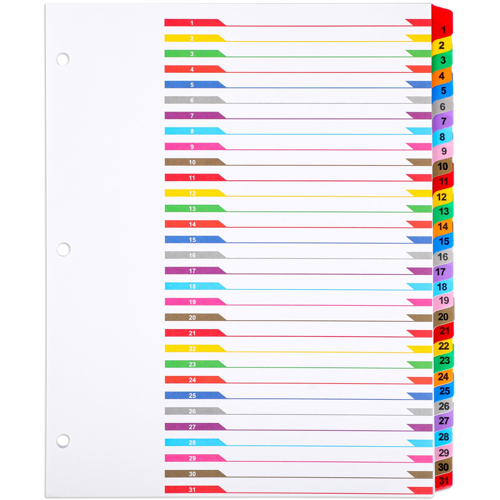 Chuangdi 1 juego de 3 separadores numerados de carpetas de anillos con 1-31 pestañas divisores mensuales para carpetas de 3 anilla