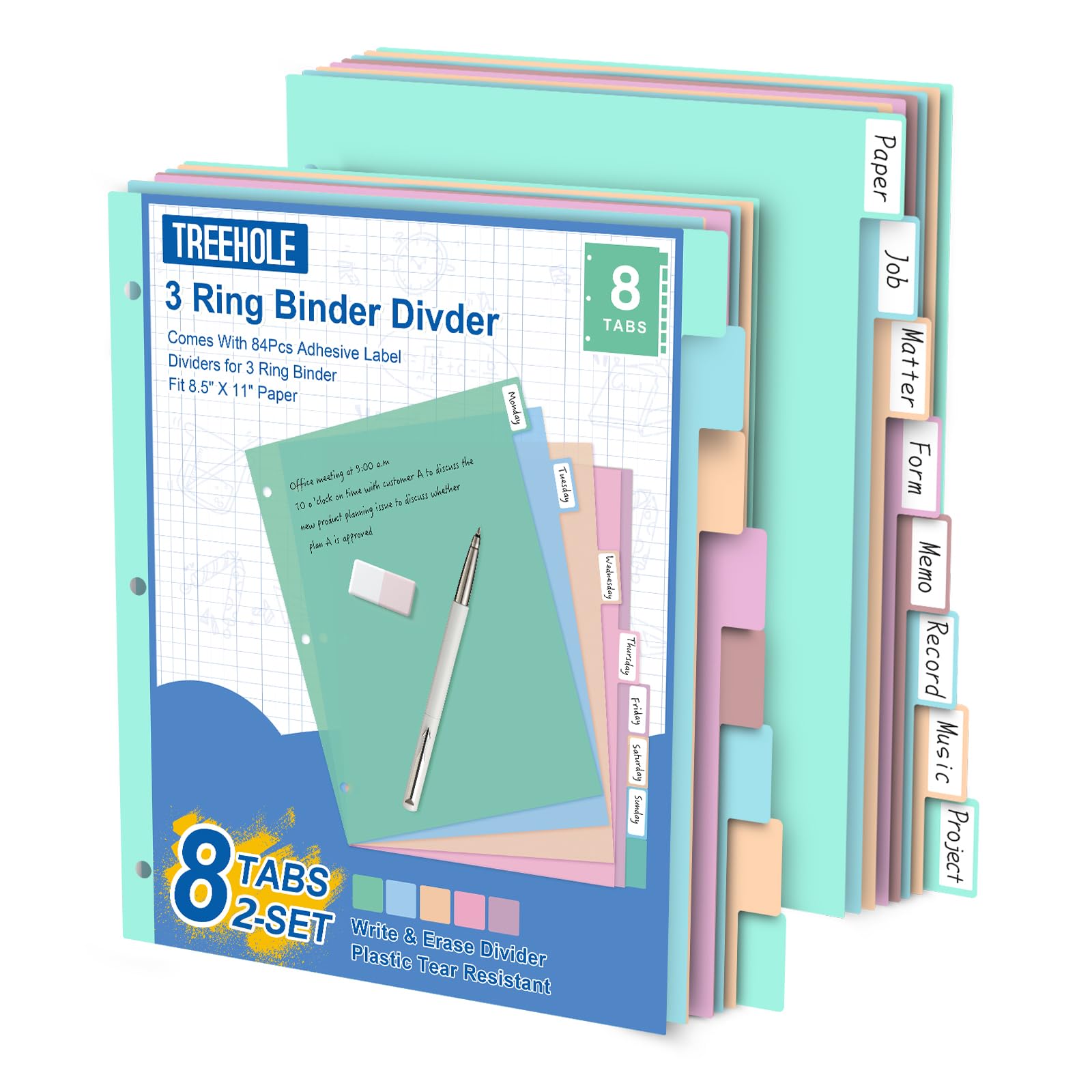 4 juegos de 8 separadores de carpetas de pestañas para 3 anillos de 8.5 x 11 pulgadas, separadores de carpetas de plástico con pes