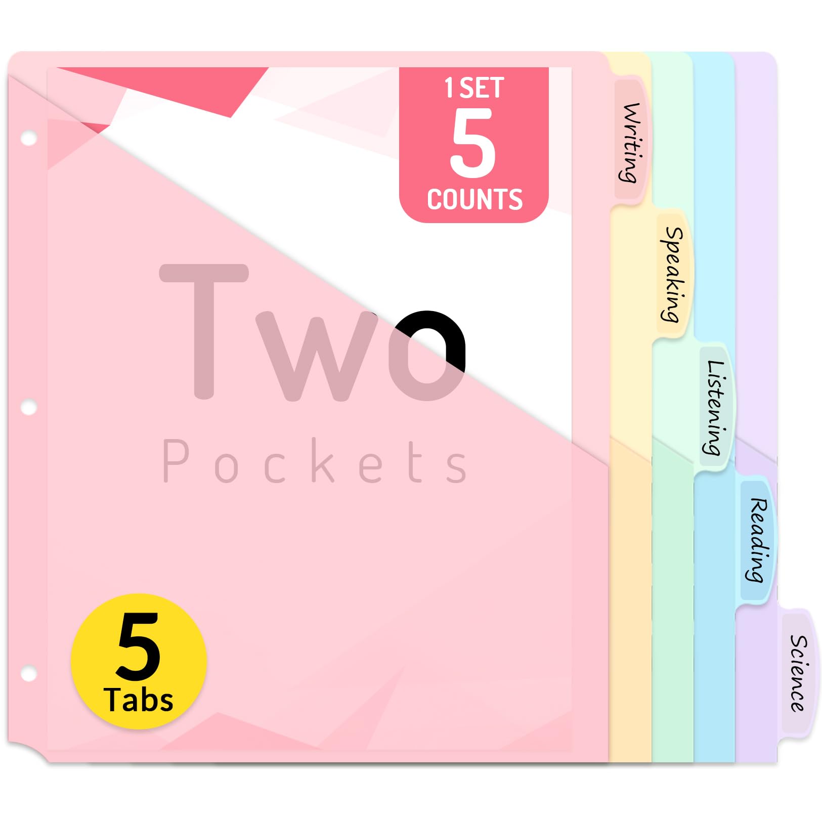 HABGP Separadores de carpetas de 3 anillos con 5 pestañas, paquete de 2 5 separadores de carpetas, carpeta de índice de plástico p