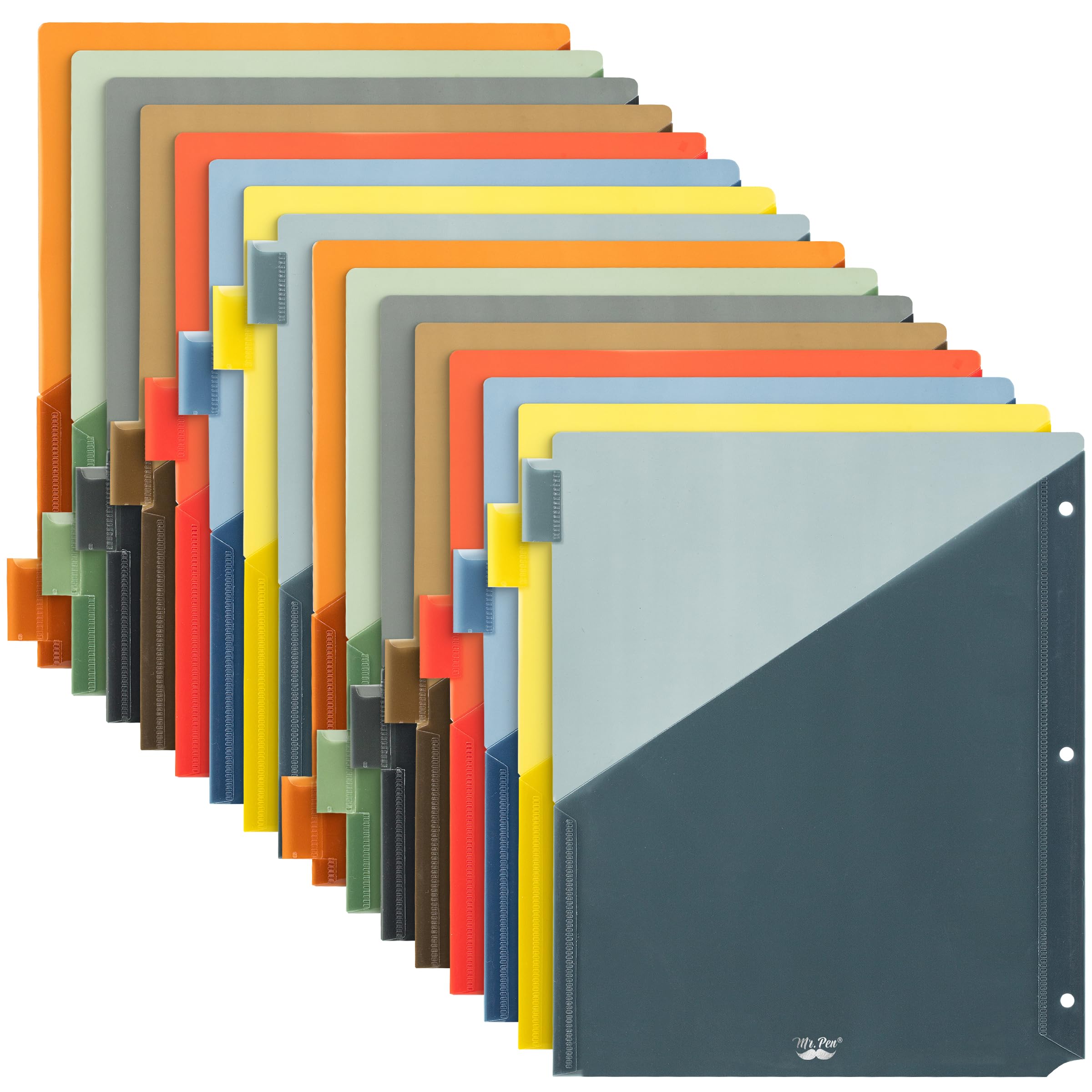 Mr. Pen – Divisores de carpetas con bolsillos y pestañas, paquete de 16, coloridos, separadores de carpetas de 3 anillos con pesta