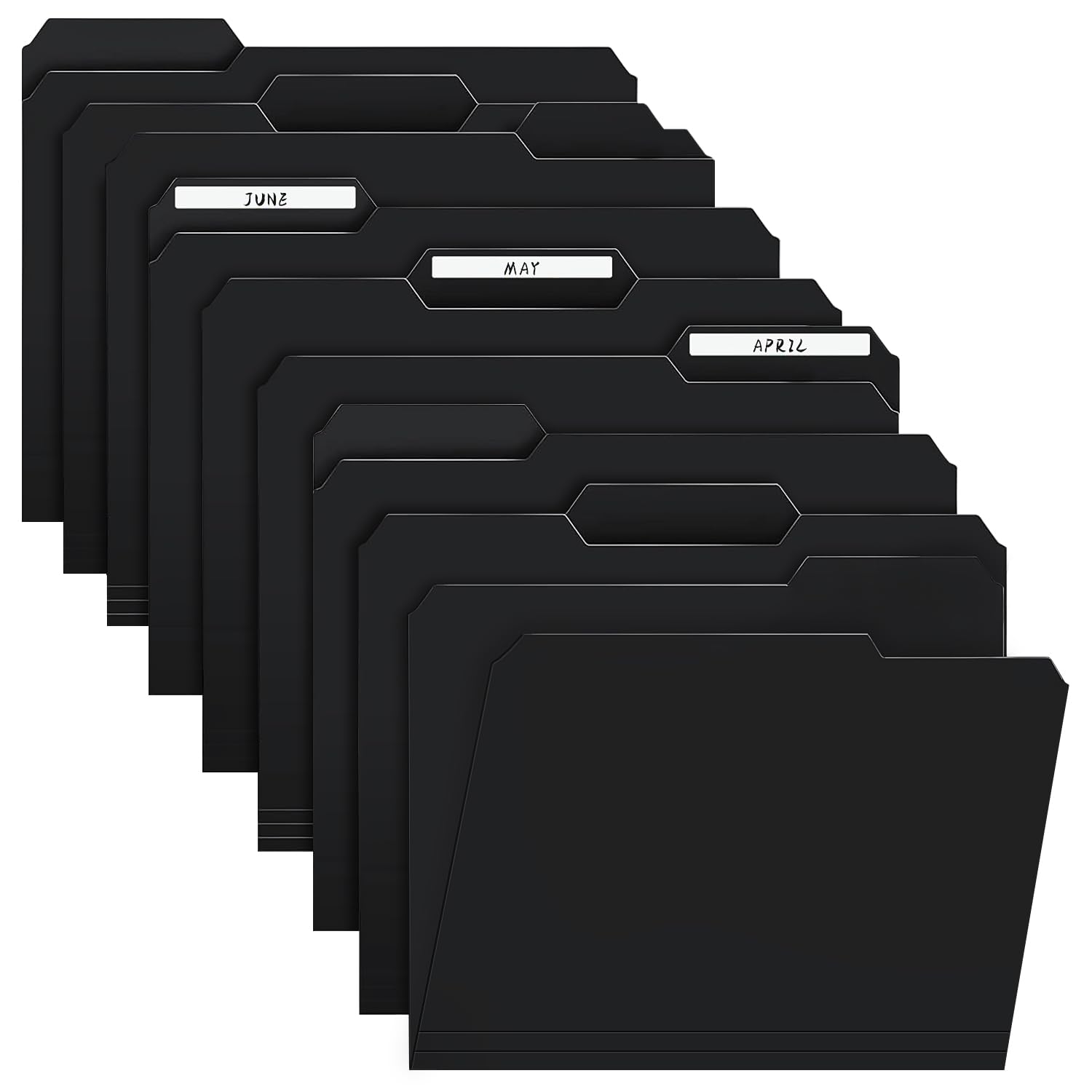 Marati Paquete de 9 carpetas de archivos de plástico, carpetas de manilla negra, tamaño carta, pestañas de corte de 1/3, organizad