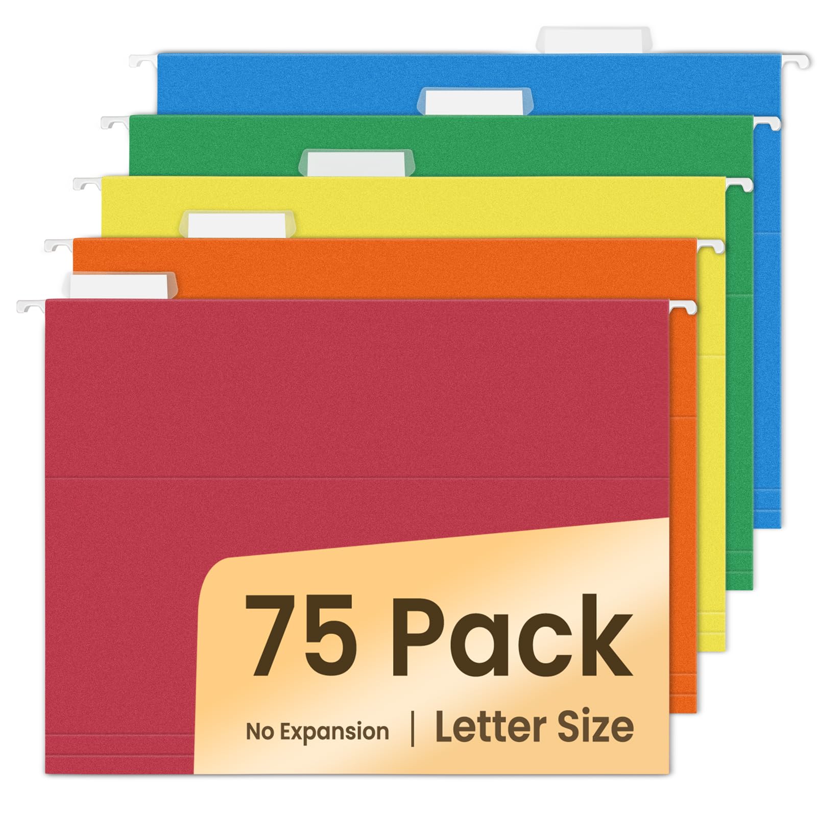 SUNEE Carpetas colgantes para archivos, colores surtidos, paquete de 75 carpetas de archivos de colores, tamaño carta con pestañas