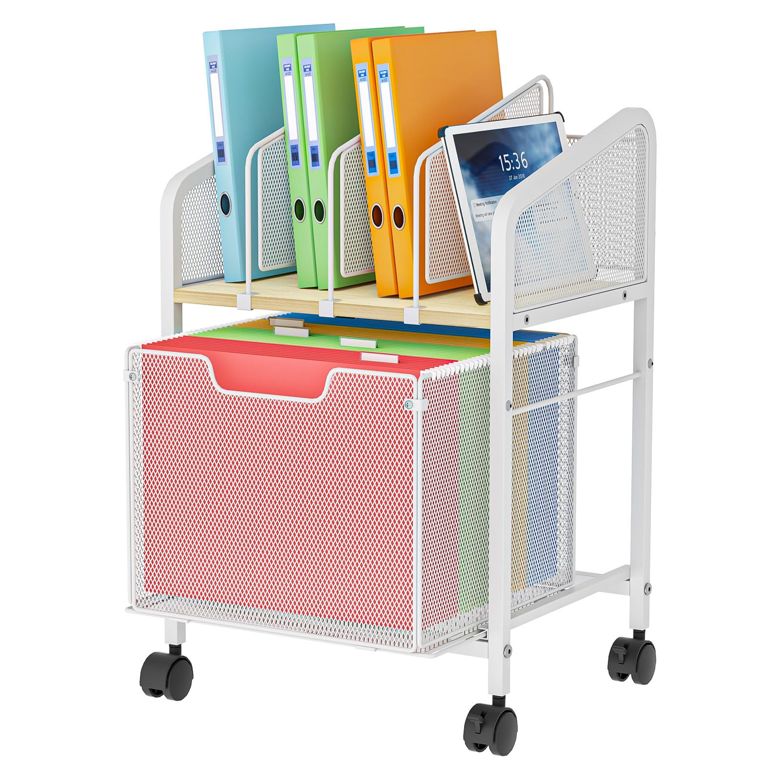 Archivador rodante con divisores ajustables, archivador móvil con cajón de almacenamiento en ruedas con cerradura, organizador de