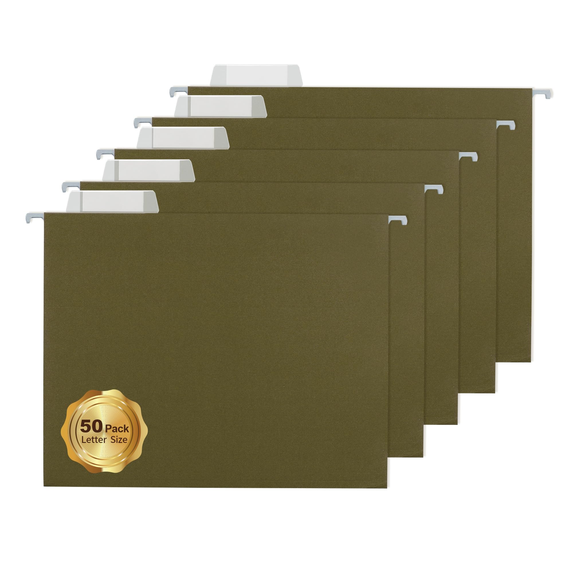 Paquete de 50 carpetas colgantes de archivos verde oscuro, tamaño carta de 8.5 x 11, carpetas colgantes con pestañas de corte 1/5,