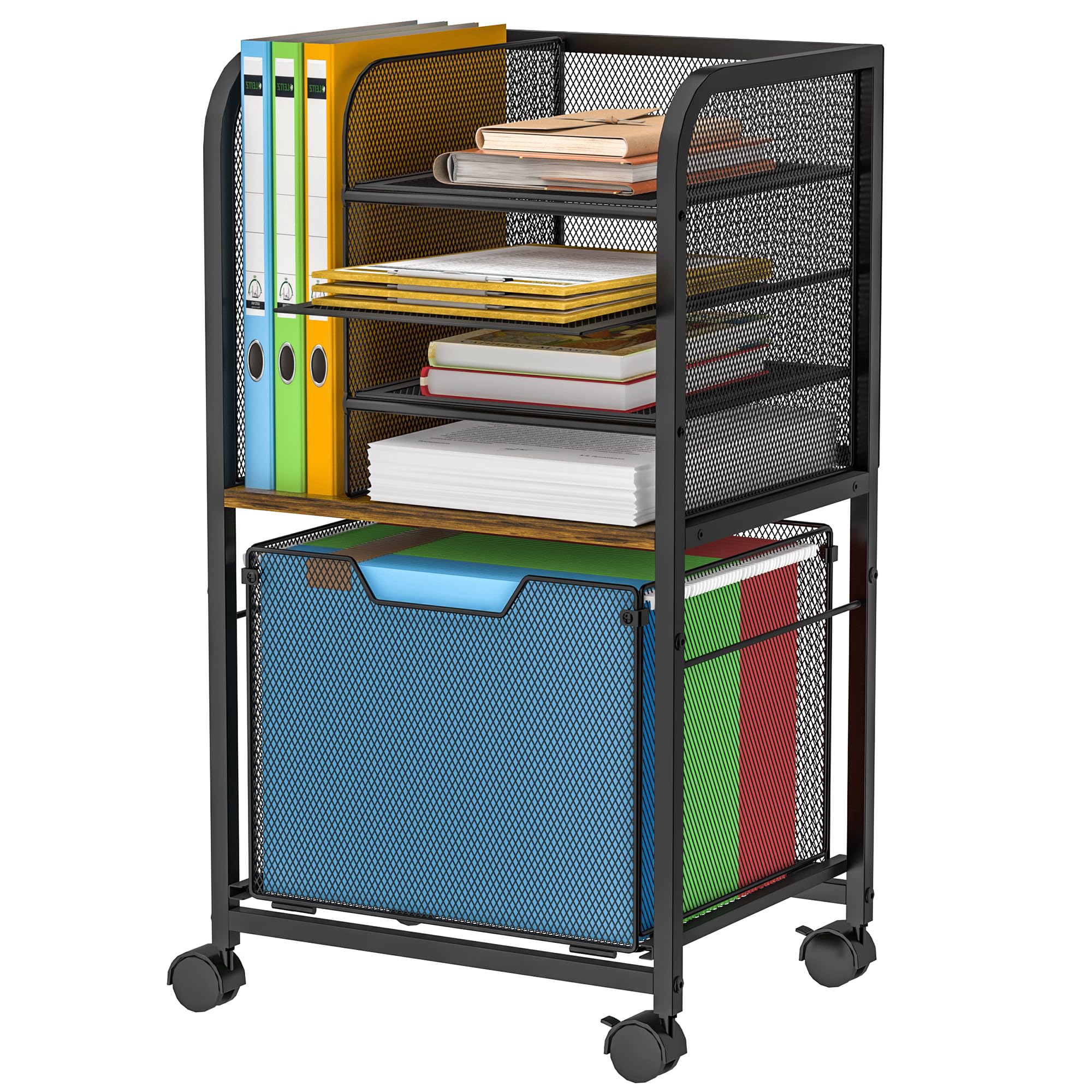 Carro de archivos rodante de 5 niveles con cajones, organizador de archivadores para colgar carpetas de archivos, almacenamiento d