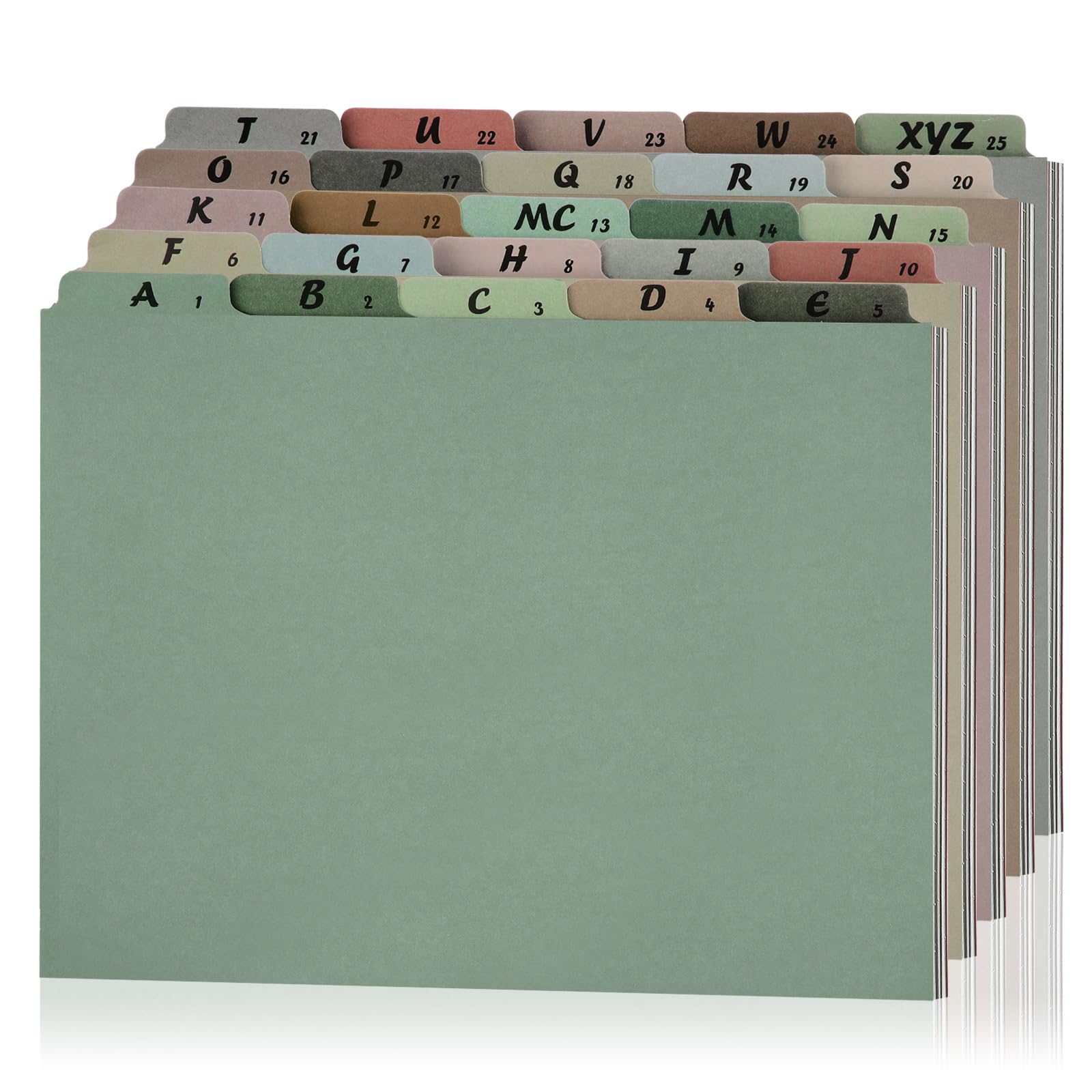 1 juego de 25 separadores de archivos del alfabeto A-Z, pestaña superior, tamaño carta, 1/5, pestañas de corte 1/5, números alfabé