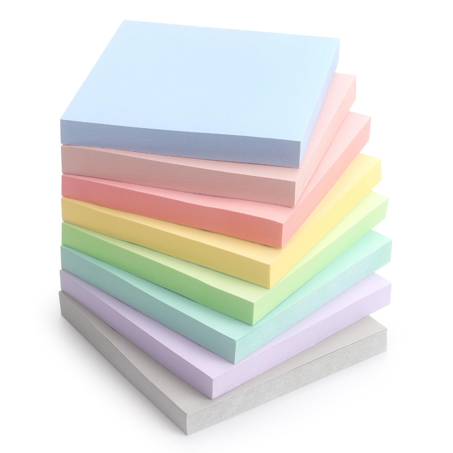 Notas adhesivas de 3 x 3 pulgadas, 8 blocs de colores claros autoadhesivos, 8 colores pastel surtidos, 80 hojas/bloc, bloc de nota