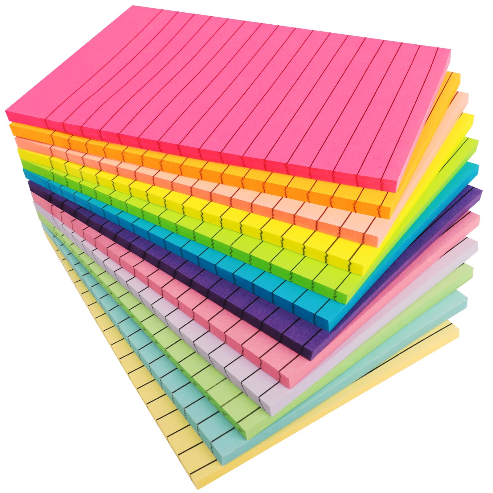 Paquete de 12 notas adhesivas forradas de 4 x 6 pulgadas, notas adhesivas con líneas, bloc de notas autoadhesivas, 12 colores bril