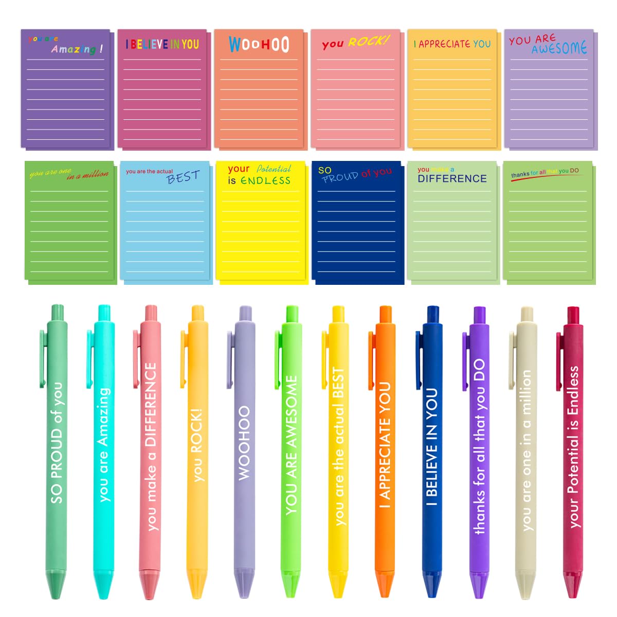 24 juegos de regalos de agradecimiento a los empleados, divertidos blocs de notas adhesivas motivacionales con frases, bolígrafos