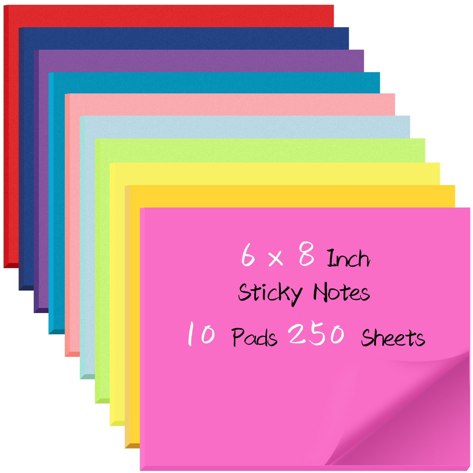 Zubebe 10 blocs de notas adhesivas grandes de colores brillantes, autoadhesivos, notas cuadradas para oficina, escuela, 25 hojas/b