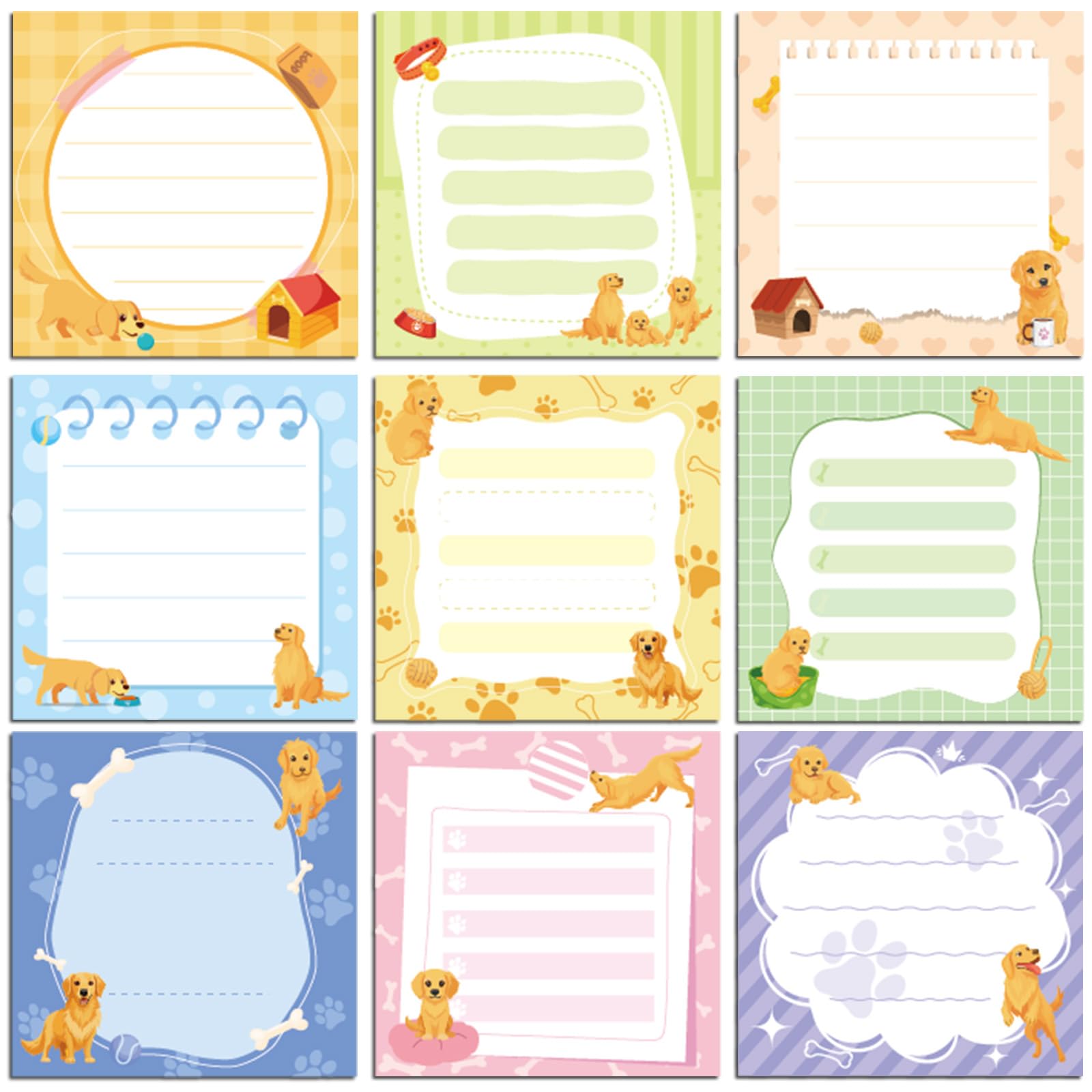 Golden Retriever – Notas adhesivas de regalo, 9 blocs de notas para perros, notas estéticas de listas de tareas, notas de animales