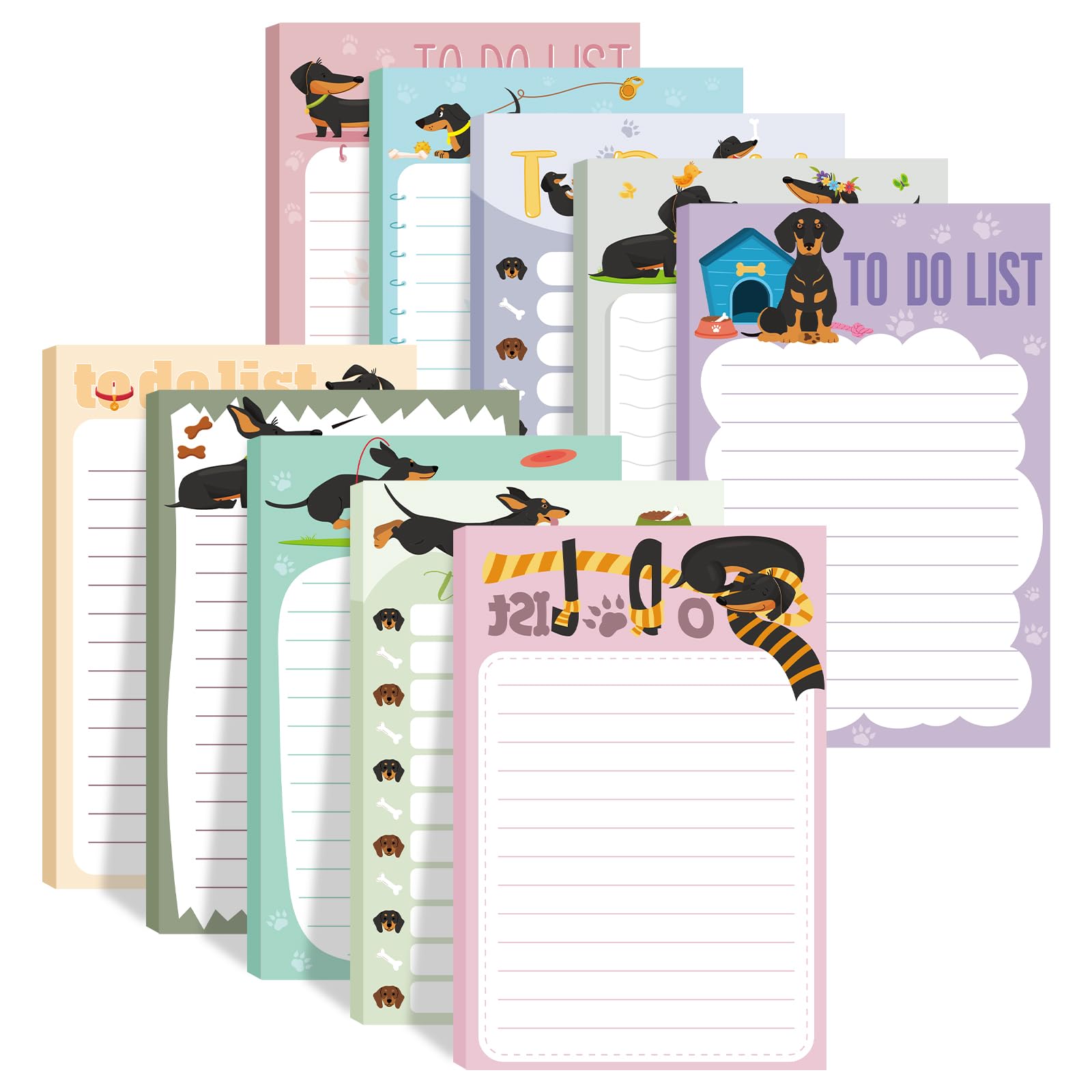 Censen 10 blocs de notas adhesivas de perro salchicha Kawaii de 4 x 6 pulgadas, 60 páginas por hacer, lindo bloc de notas autoadhe