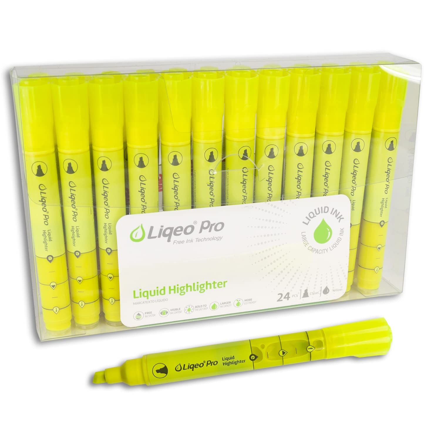 Resaltadores profesionales con tinta líquida de secado rápido y sin decoloración, punta de cincel, paquete de 24 unidades, color a