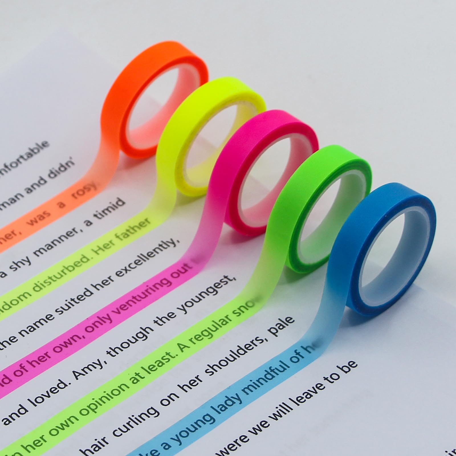 yueton 5 rollos de cinta de marcado transparente, hoja de índice de lectura, cinta de neón fluorescente, marcador de barra larga e