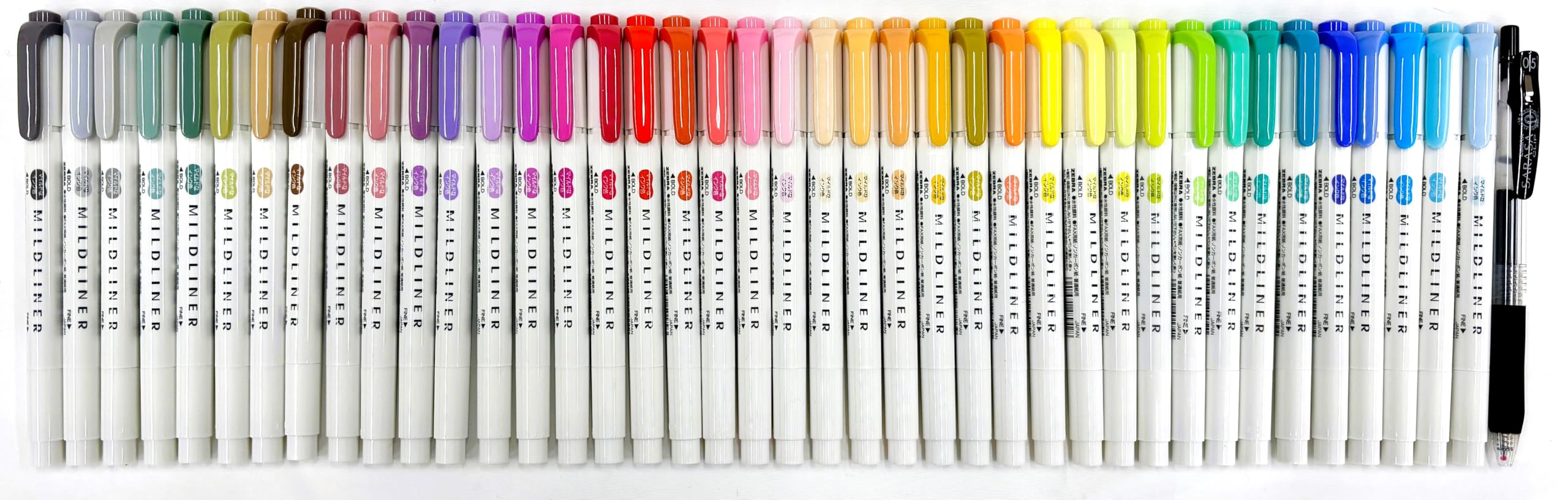 Zebra Mildliner – Bolígrafos resaltadores de doble cara de color suave, 40 colores surtidos con clip Sarasa, color negro, 0.020 in
