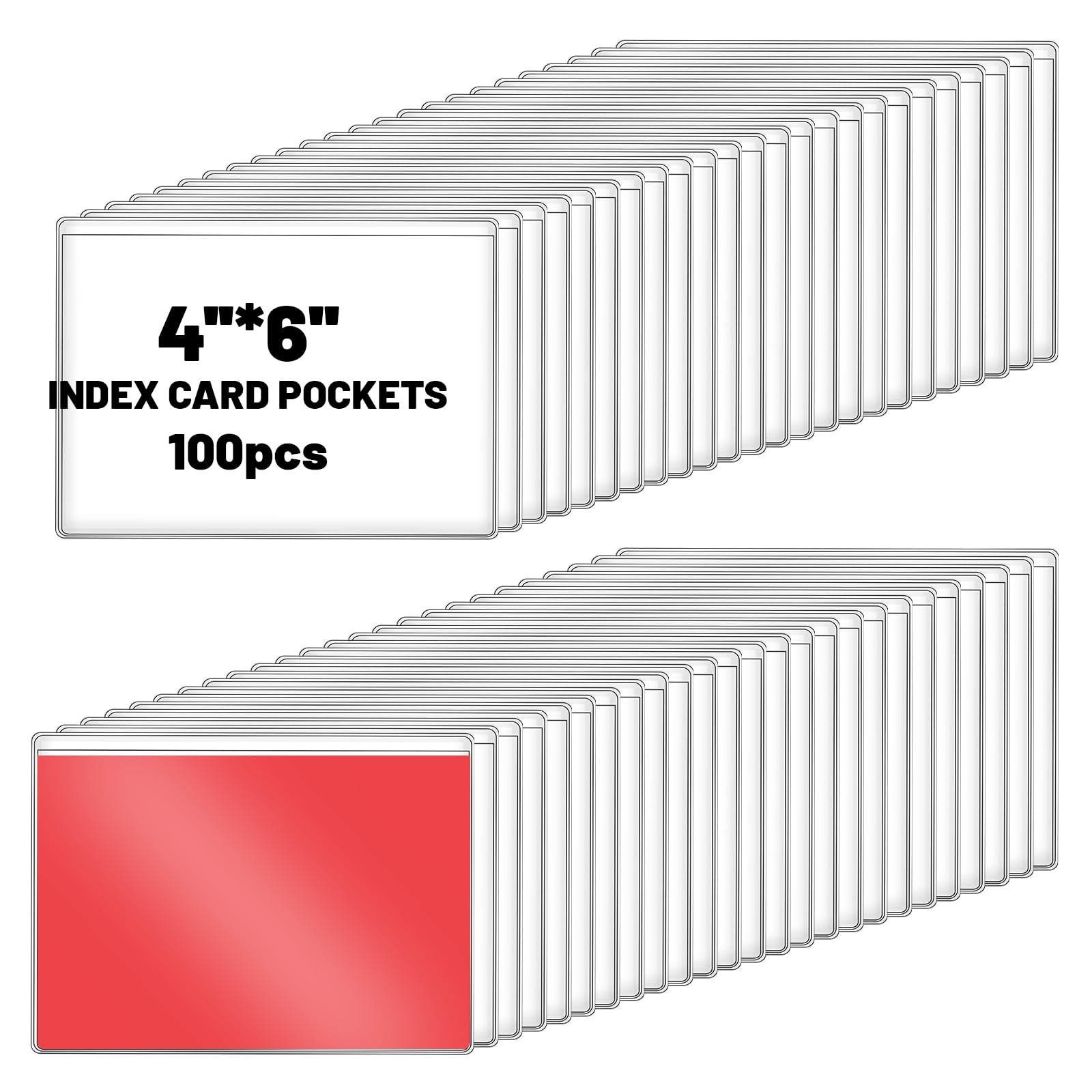 Paquete de 100 bolsillos adhesivos transparentes de 6.29 x 4.6 pulgadas, bolsillos de PVC para tarjetas de índice, etiquetas para
