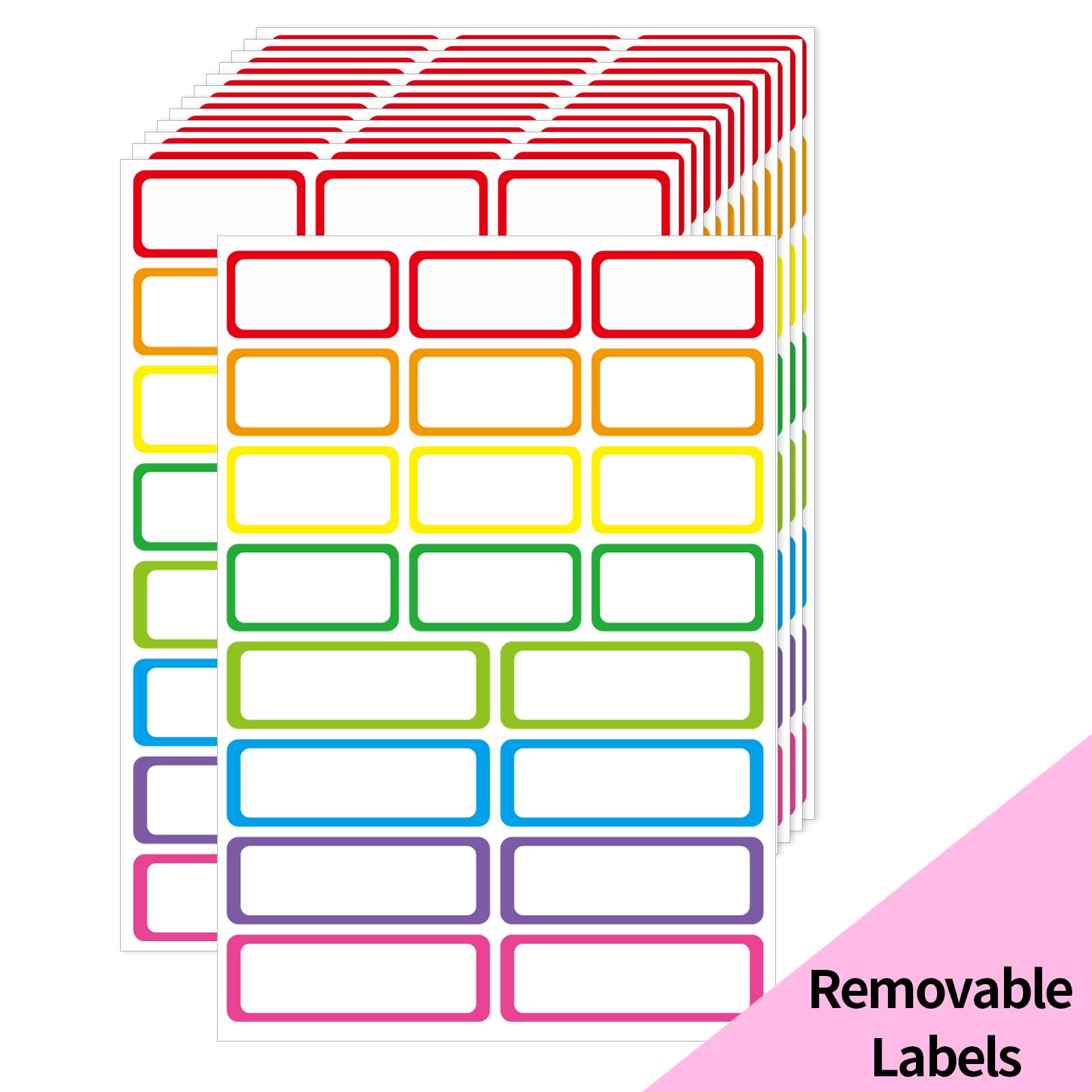 STARLIBOO Etiquetas de colores, etiquetas extraíbles, adhesivos rectangulares autoadhesivos, resistentes al agua, aceite, desgarro